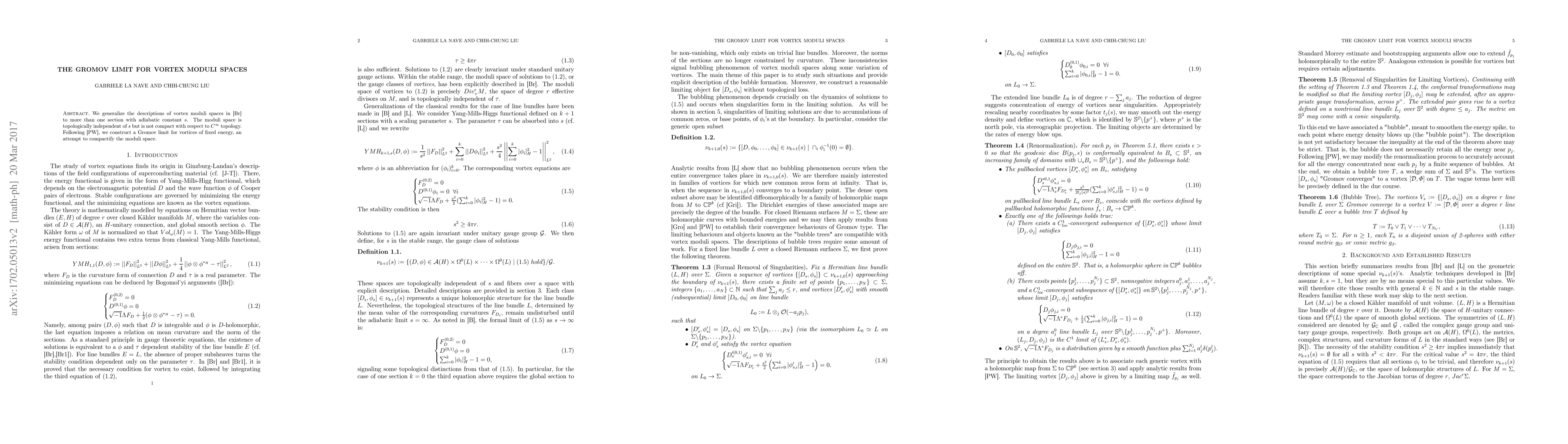 This paper generalizes the descriptions of vortex moduli spaces to multiple sections and constructs a Gromov limit to compactify these spaces, despite their topological independence from the adiabatic constant and non-compactness in the $C^\infty$ topology.