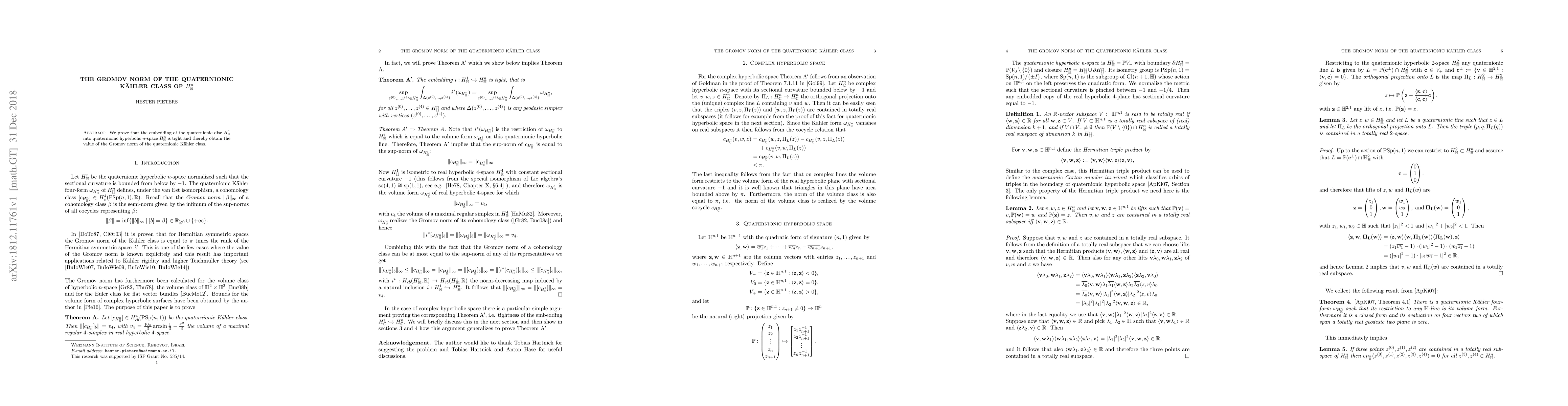 Summary: This paper demonstrates that the embedding of the quaternionic hyperbolic disc into quaternionic hyperbolic n-space is tight, leading to the determination of the Gromov norm for the quaternionic Kähler class.
