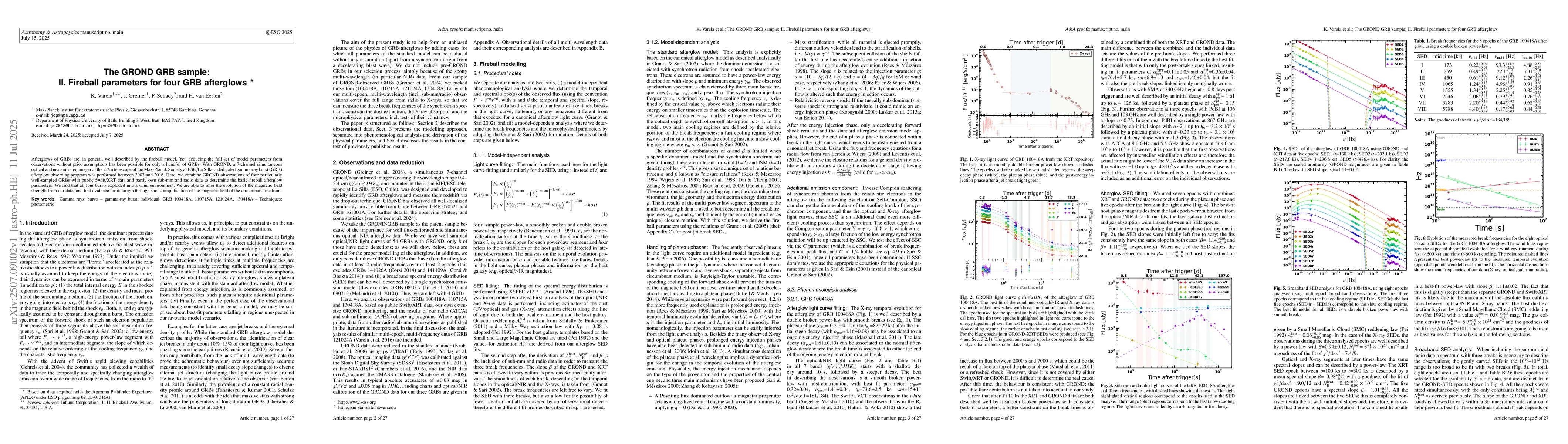 Afterglows of GRBs are, in general, well described by the fireball model. Yet, deducing the full set of model parameters from observations without prior assumptions has been possible for only a handful of GRBs. With GROND, a 7-channel simultaneous optical and near-infrared imager at the 2.2m telescope of the Max-Planck Society at ESO/La Silla, a dedicated gamma-ray burst (GRB) afterglow observing program was performed between 2007 and 2016. Here, we combine GROND observations of four particularly well-sampled GRBs with public Swift/XRT data and partly own sub-mm and radio data to determine the basic fireball afterglow parameters. We find that all four bursts exploded into a wind environment. We are able to infer the evolution of the magnetic field strength from our data, and find evidence for its origin through shock amplification of the magnetic field of the circumburst medium.