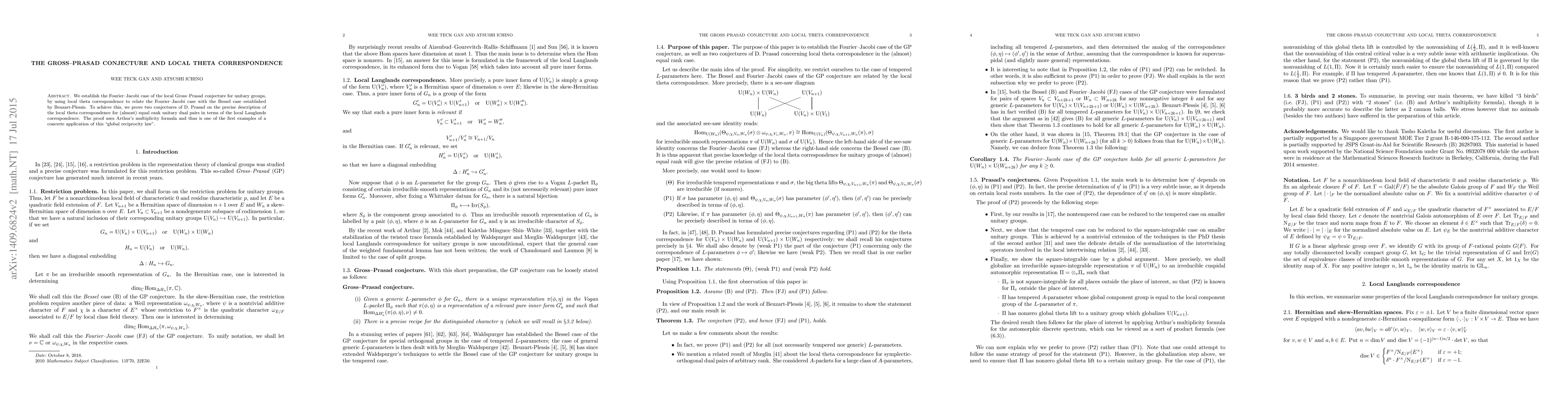 The paper establishes the Fourier-Jacobi case of the local Gross-Prasad conjecture for unitary groups by employing local theta correspondence. It achieves this by proving two conjectures on the local theta correspondence for unitary dual pairs, linking it to the local Langlands correspondence.