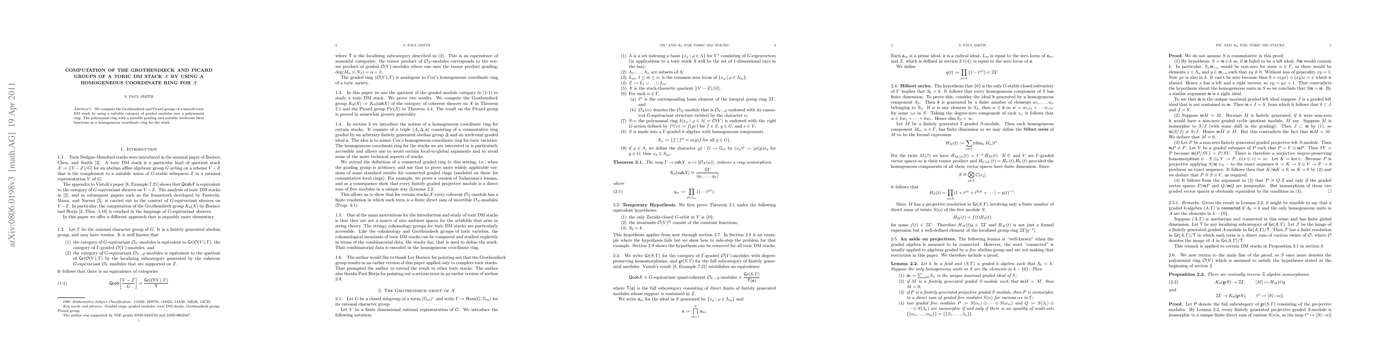 We compute the Grothendieck and Picard groups of a complete smooth toric Deligne-Mumford stack by using a suitable category of graded modules over a polynomial ring.