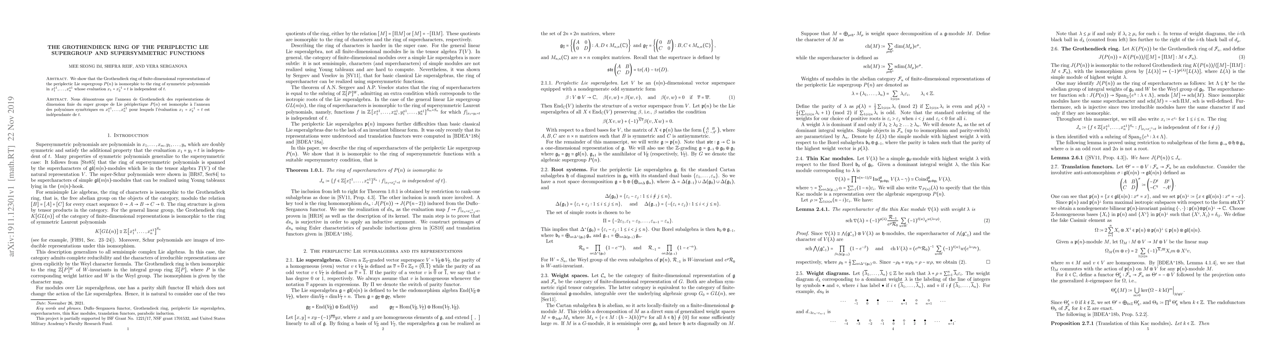 Summary: The research demonstrates that the Grothendieck ring of the periplectic Lie supergroup $P(n)$ corresponds to the ring of symmetric polynomials in $x_1^{\pm 1}, \ldots, x_n^{\pm 1}$, with a specific evaluation independent of $t$. This establishes a connection between Lie supergroups and supersymmetric functions.