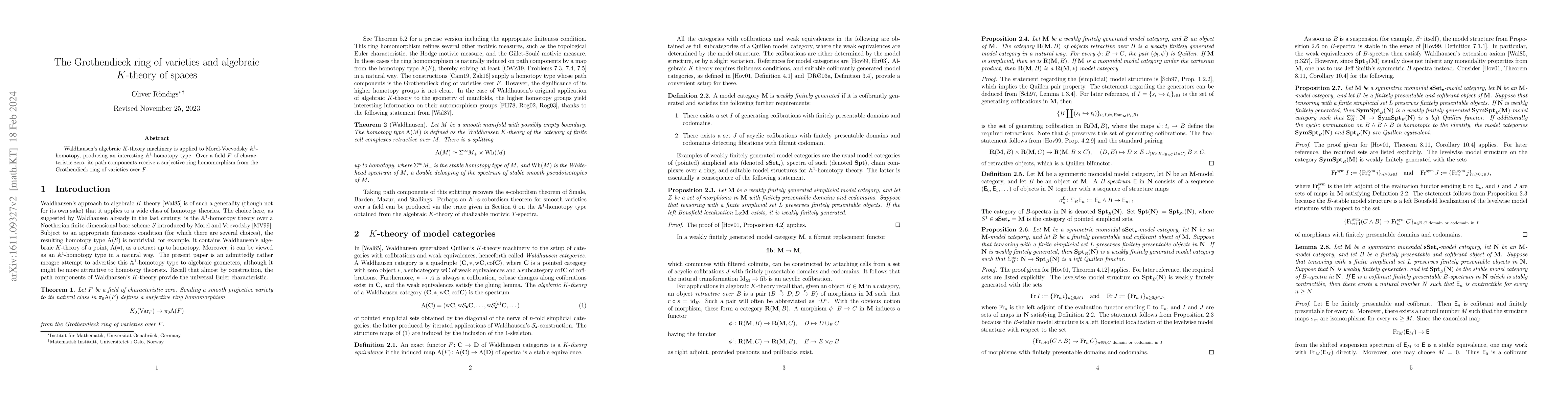 This paper applies Waldhausen's algebraic K-theory to motivic homotopy theory, generating a novel motivic homotopy type. It establishes a surjective ring homomorphism from the Grothendieck ring of varieties over fields of characteristic zero to the path components of this new type.