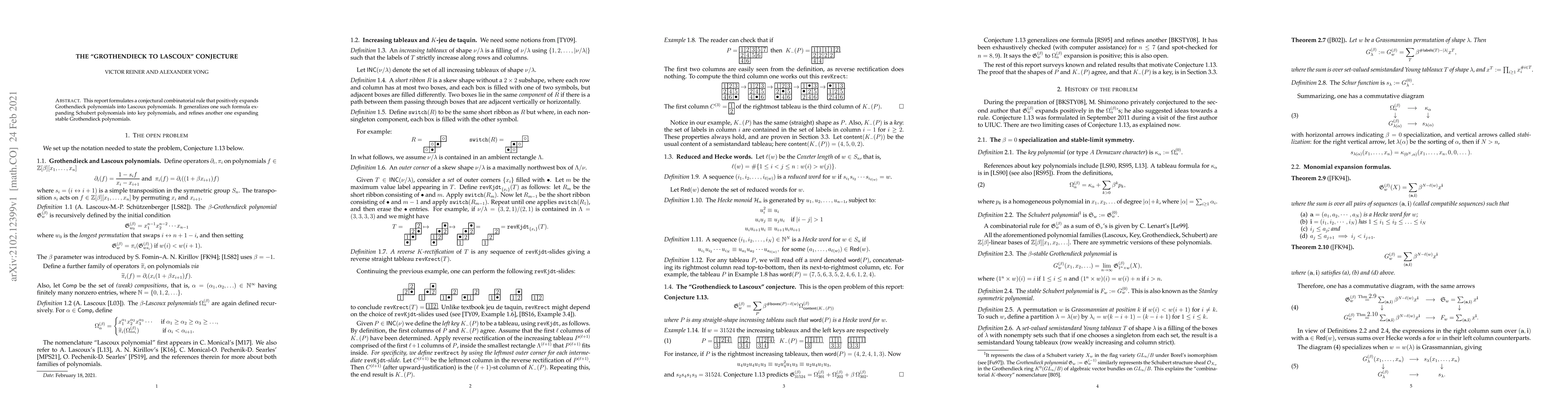 This report formulates a conjectural combinatorial rule that positively expands Grothendieck polynomials into Lascoux polynomials. It generalizes one such formula expanding Schubert polynomials into key polynomials, and refines another one expanding stable Grothendieck polynomials.
