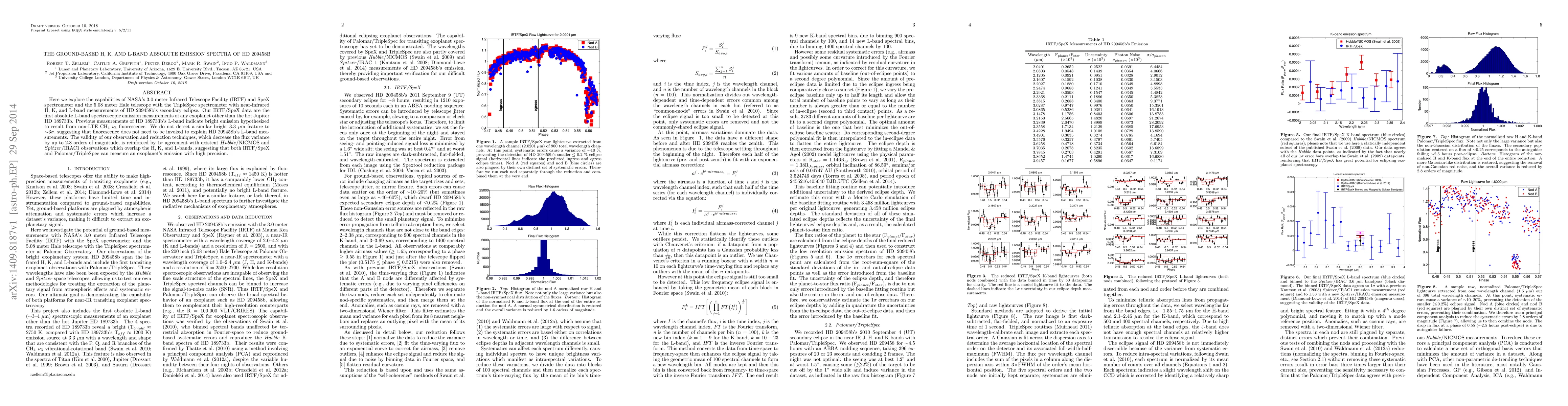Here we explore the capabilities of NASA's 3.0 meter Infrared Telescope Facility (IRTF) and SpeX spectrometer and the 5.08 meter Hale telescope with the TripleSpec spectrometer with near-infrared H, K, and L-band measurements of HD 209458b's secondary eclipse. Our IRTF/SpeX data are the first absolute L-band spectroscopic emission measurements of any exoplanet other than the hot Jupiter HD 189733b. Previous measurements of HD 189733b's L-band indicate bright emission hypothesized to result from non-LTE CH$_{4}$ $\nu_{3}$ fluorescence. We do not detect a similar bright 3.3 $\mu$m feature to ~3$\sigma$, suggesting that fluorescence does not need to be invoked to explain HD 209458b's L-band measurements. The validity of our observation and reduction techniques, which decrease the flux variance by up to 2.8 orders of magnitude, is reinforced by 1$\sigma$ agreement with existent $Hubble$/NICMOS and $Spitzer$/IRAC1 observations which overlap the H, K, and L-bands, suggesting that both IRTF/SpeX and Palomar/TripleSpec can measure an exoplanet's emission with high precision.