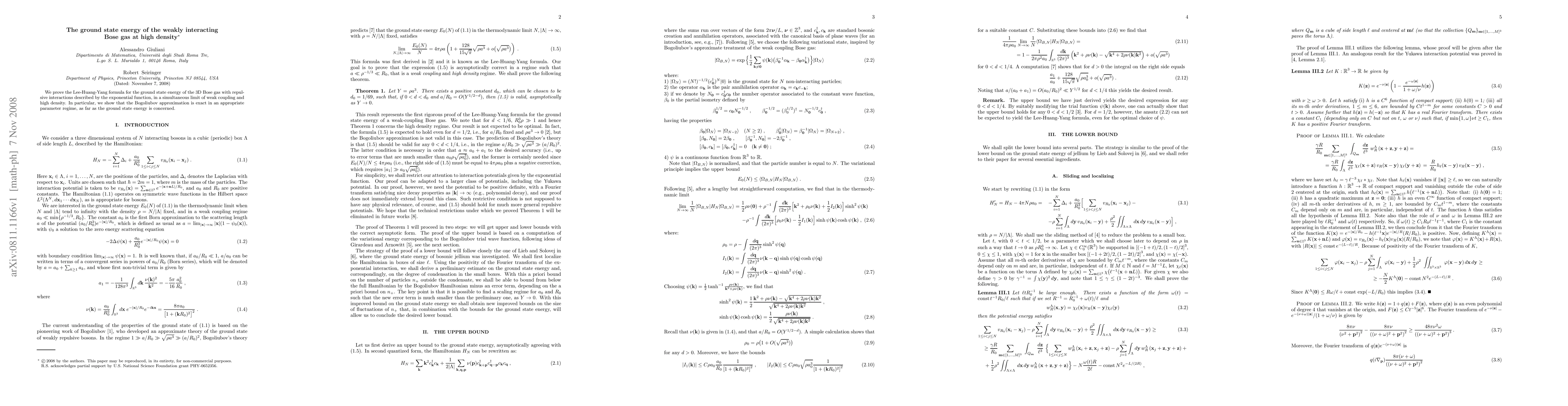 We prove the Lee-Huang-Yang formula for the ground state energy of the 3D Bose gas with repulsive interactions described by the exponential function, in a simultaneous limit of weak coupling and high density. In particular, we show that the Bogoliubov approximation is exact in an appropriate parameter regime, as far as the ground state energy is concerned.