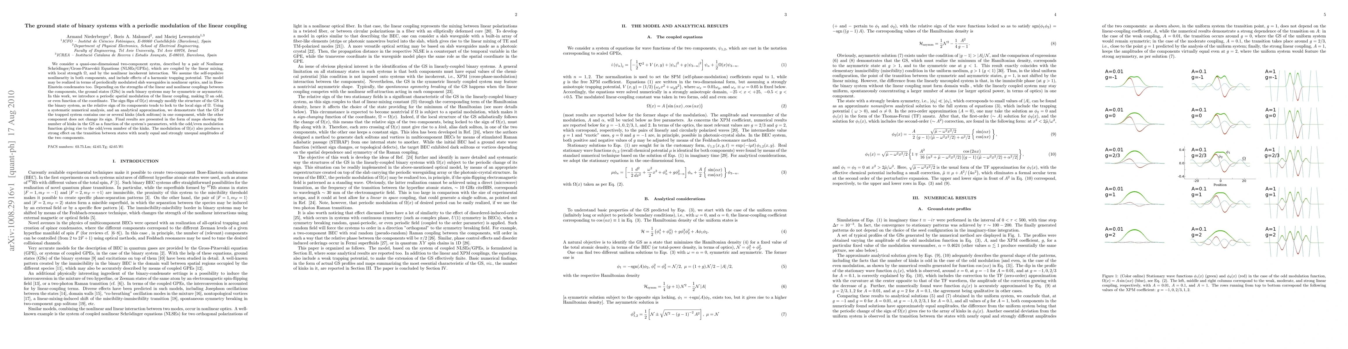 We consider a quasi-one-dimensional two-component systm, described by a pair of Nonlinear Schr\"{o}dinger/Gross-Pitaevskii Equations (NLSEs/GPEs), which are coupled by the linear mixing, with local strength $\Omega $, and by the nonlinear incoherent interaction. We assume the self-repulsive nonlinearity in both components, and include effects of a harmonic trapping potential. The model may be realized in terms of periodically modulated slab waveguides in nonlinear optics, and in Bose-Einstein condensates too. Depending on the strengths of the linear and nonlinear couplings between the components, the ground states (GSs) in such binary systems may be symmetric or asymmetric. In this work, we introduce a periodic spatial modulation of the linear coupling, making $\Omega $ an odd, or even function of the coordinate. The sign flips of $\Omega (x)$ strongly modify the structure of the GS in the binary system, as the relative sign of its components tends to lock to the local sign of $\Omega $. Using a systematic numerical analysis, and an analytical approximation, we demonstrate that the GS of the trapped system contains one or several kinks (dark solitons) in one component, while the other component does not change its sign. Final results are presented in the form of maps showing the number of kinks in the GS as a function of the system's parameters, with the odd/even modulation function giving rise to the odd/even number of the kinks. The modulation of $\Omega (x)$ also produces a strong effect on the transition between states with nearly equal and strongly unequal amplitudes of the two components.