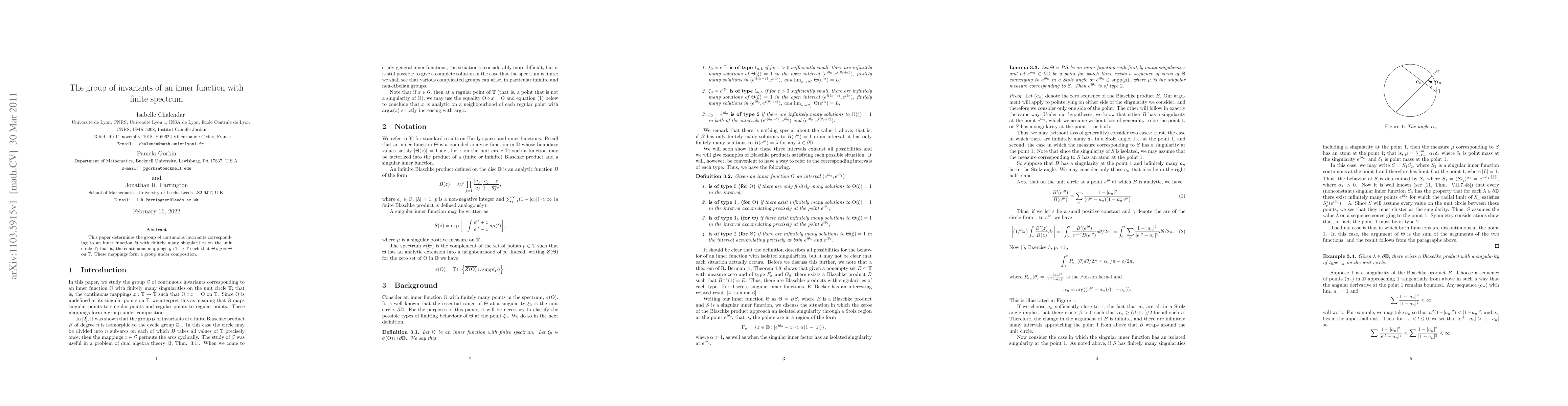This paper determines the group of continuous invariants corresponding to an inner function $ \Theta $ with finitely many singularities on the unit circle $T$; that is, the continuous mappings $g: T \to T$ such that $\Theta \circ g = \Theta $ on $\T$. These mappings form a group under composition.