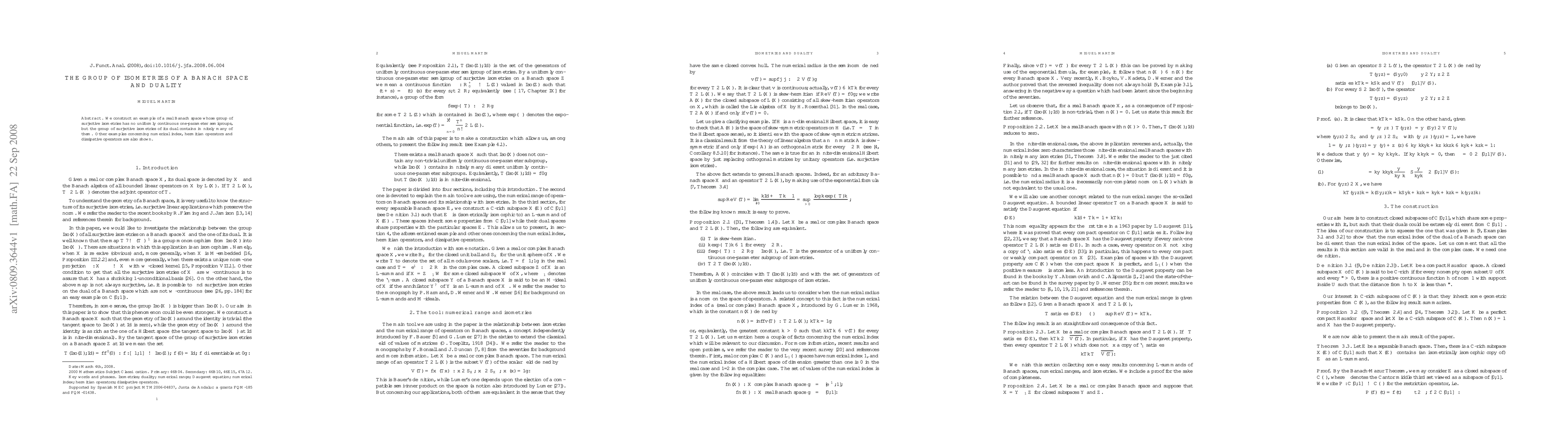 This paper constructs a real Banach space where the group of its surjective isometries lacks uniformly continuous one-parameter semigroups, while the dual space's surjective isometries group contains infinitely many such semigroups. It also explores examples related to numerical index, hermitian, and dissipative operators.