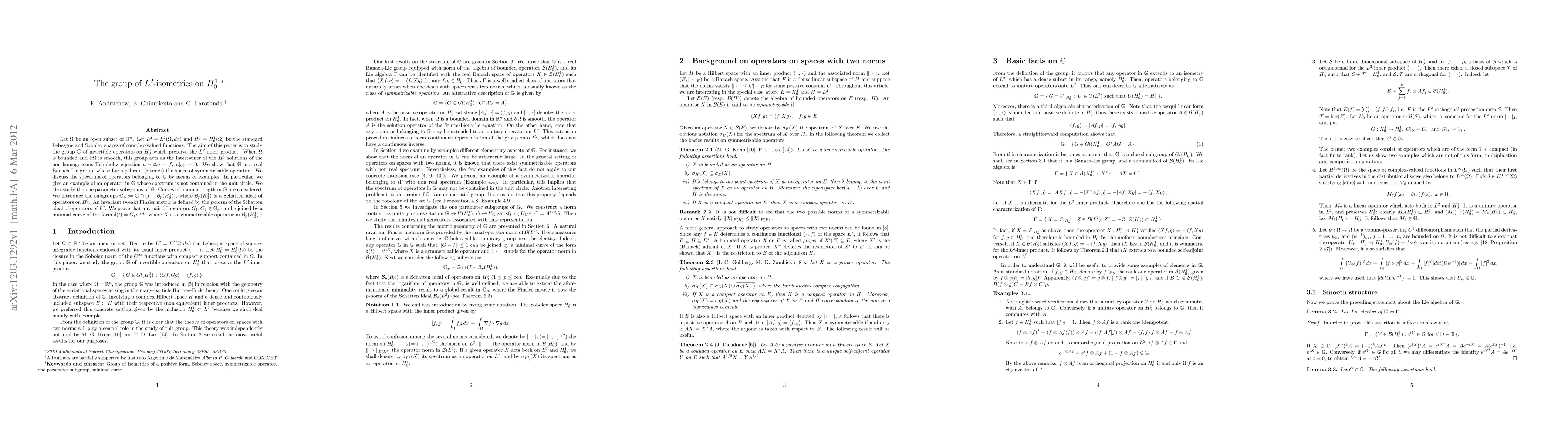 Let U be an open subset of R^n. Let L^2=L^2(U,dx) and H^1_0=H^1_0(U) be the standard Lebesgue and Sobolev spaces of complex-valued functions. The aim of this paper is to study the group G of invertible operators on H^1_0 which preserve the L^2-inner product. When U is bounded and the border $\partial U$ is smooth, this group acts as the intertwiner of the H^1_0 solutions of the non-homogeneous Helmholtz equation $u-\Delta u=f$, $u|_{\partial U}=0$. We show that G is a real Banach-Lie group, whose Lie algebra is (i times) the space of symmetrizable operators. We discuss the spectrum of operators belonging to G by means of examples. In particular, we give an example of an operator in G whose spectrum is not contained in the unit circle. We also study the one parameter subgroups of G. Curves of minimal length in G are considered. We introduce the subgroups G_p:=G \cap (I - B_p(H^1_0)), where B_p(H_0^1) is a Schatten ideal of operators on H_0^1. An invariant (weak) Finsler metric is defined by the p-norm of the Schatten ideal of operators of L^2. We prove that any pair of operators g_1,g_2 in G_p can be joined by a minimal curve of the form $a(t)=g_1 e^{itX}$, where X is a symmetrizable operator in B_p(H^1_0).