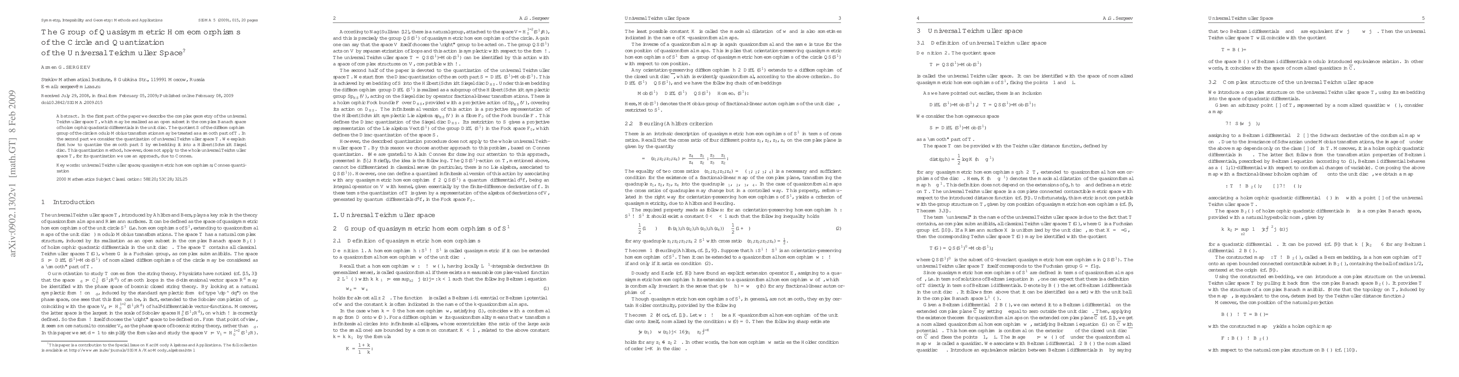 This paper explores the complex geometry of the universal Teichmüller space $\mathcal T$ and its relation to quasisymmetric homeomorphisms of the circle. It quantizes the smooth part $\mathcal S$ by embedding it into a Hilbert-Schmidt Siegel disc, while employing Connes' approach for the full quantization of $\mathcal T$.