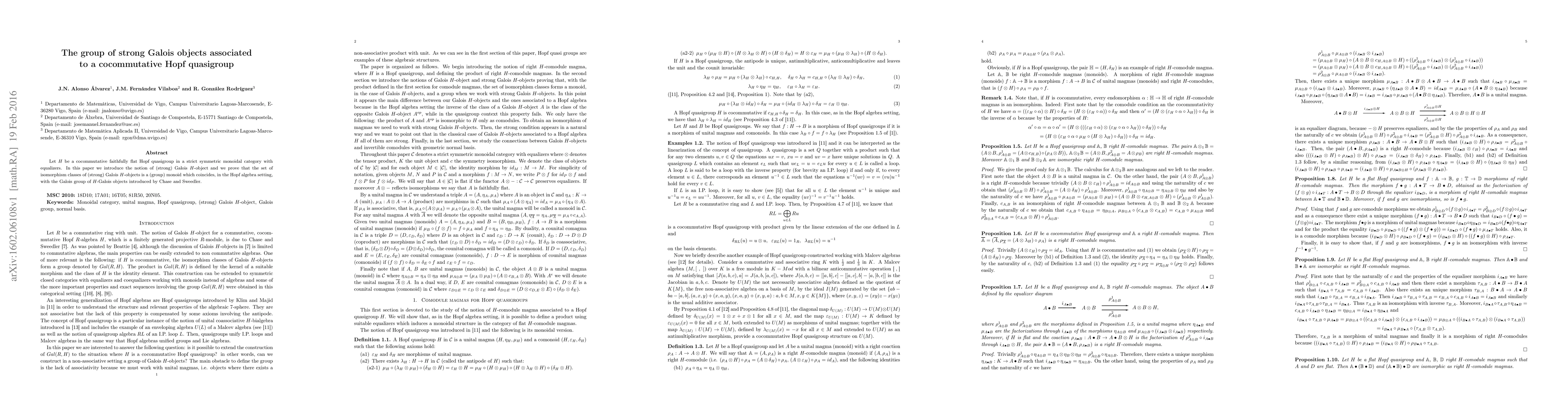 Let H be a cocommutative faithfully flat Hopf quasigroup in a strict symmetric monoidal category with equalizers. In this paper we introduce the notion of (strong) Galois H-object and we prove that the set of isomorphism classes of (strong) Galois H-objects is a (group) monoid which coincides, in the Hopf algebra setting, with the Galois group of H-Galois objects introduced by Chase and Sweedler.