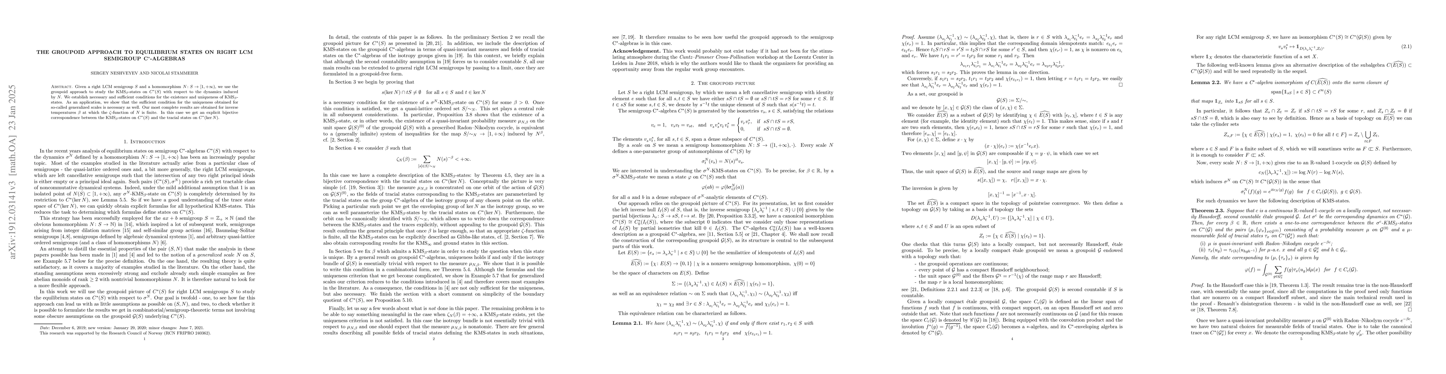Summary: The paper explores the groupoid technique to investigate KMS states on $C^*(S)$ for right LCM semigroups, establishing conditions for their existence and uniqueness, especially for inverse temperatures where the $\zeta$-function of $N$ is finite, leading to a bijective correspondence with tracial states on $C^*(\operatorname{ker} N)$.