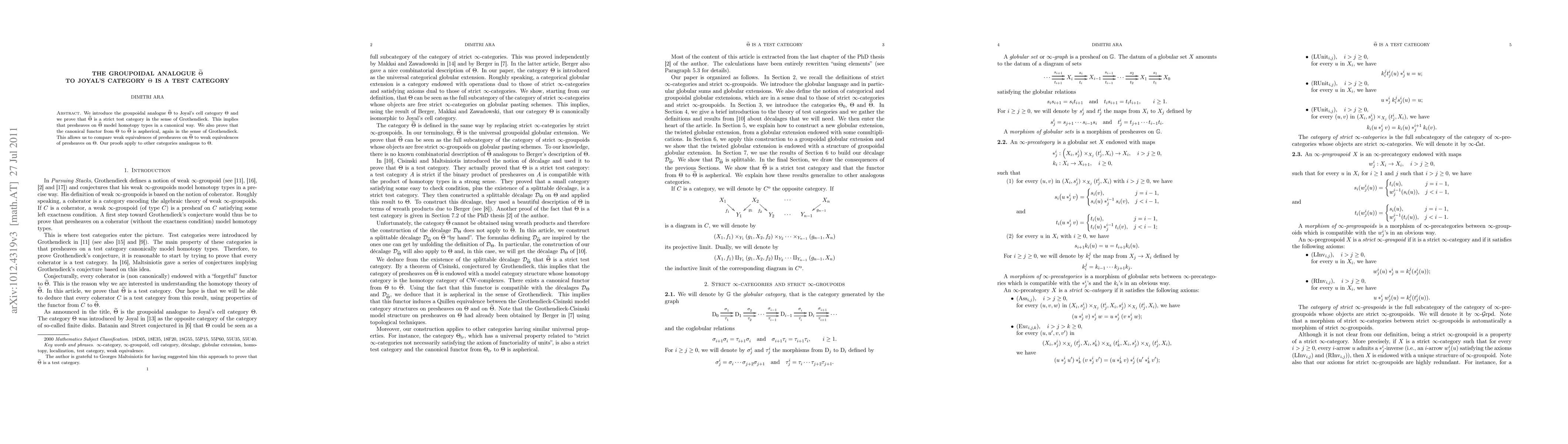 Researchers introduce a new category ¬Theta that models homotopy types in a canonical way, building on Joyal's original cell category Theta. They prove that this category is a strict test category, allowing for comparisons between weak equivalences of presheaves.