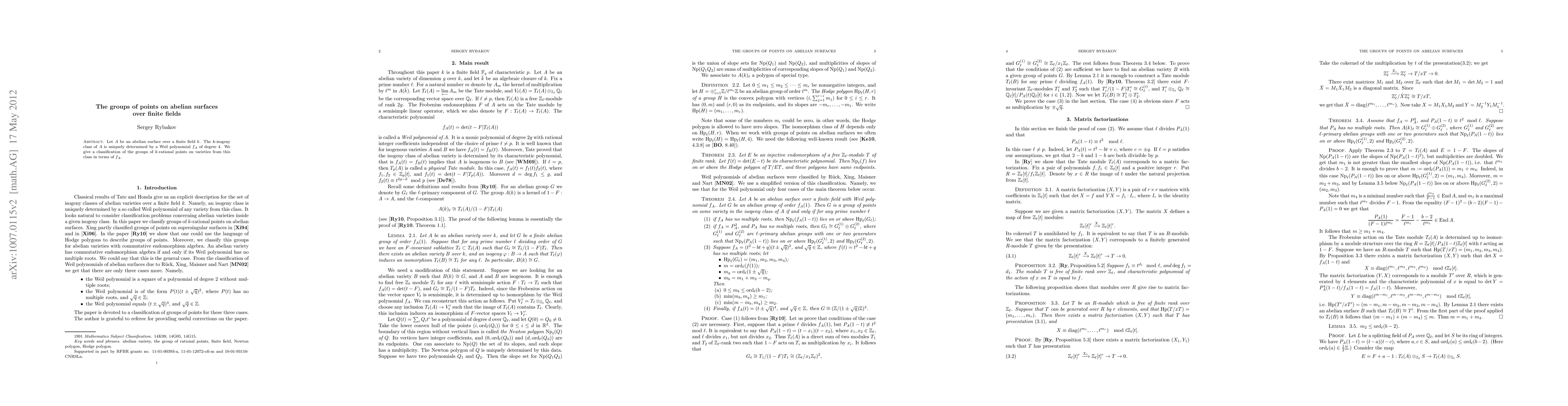 Let $A$ be an abelian surface over a finite field $k$. The $k$-isogeny class of $A$ is uniquely determined by a Weil polynomial $f_A$ of degree 4. We give a classification of the groups of $k$-rational points on varieties from this class in terms of $f_A$.