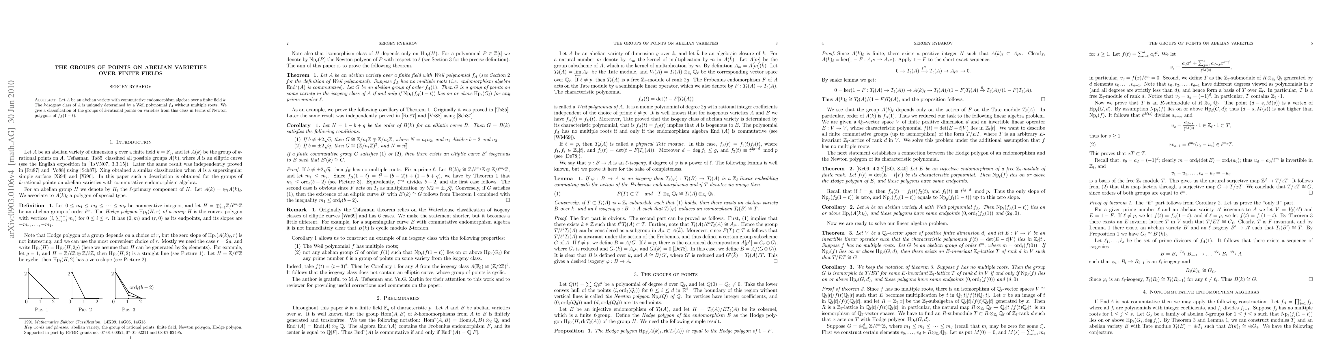 Summary: The paper classifies the $k$-rational point groups on abelian varieties with commutative endomorphisms over finite fields, based on the Newton polygons of the Weil polynomial $f_A(1-t)$, determining the $k$-isogeny class.