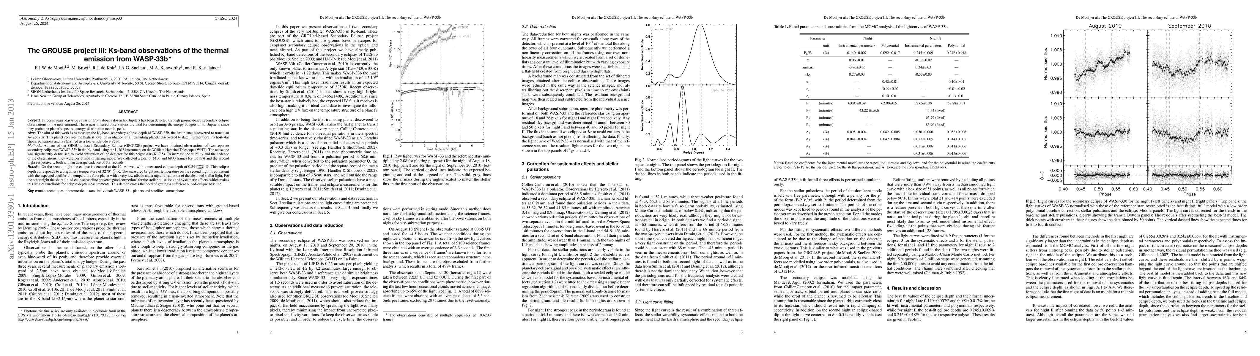 This paper reports Ks-band secondary eclipse observations of the hot Jupiter WASP-33b, revealing a brightness temperature of 3270 K during a reliable eclipse. The study highlights the importance of sufficient out-of-eclipse data for accurate measurements.
