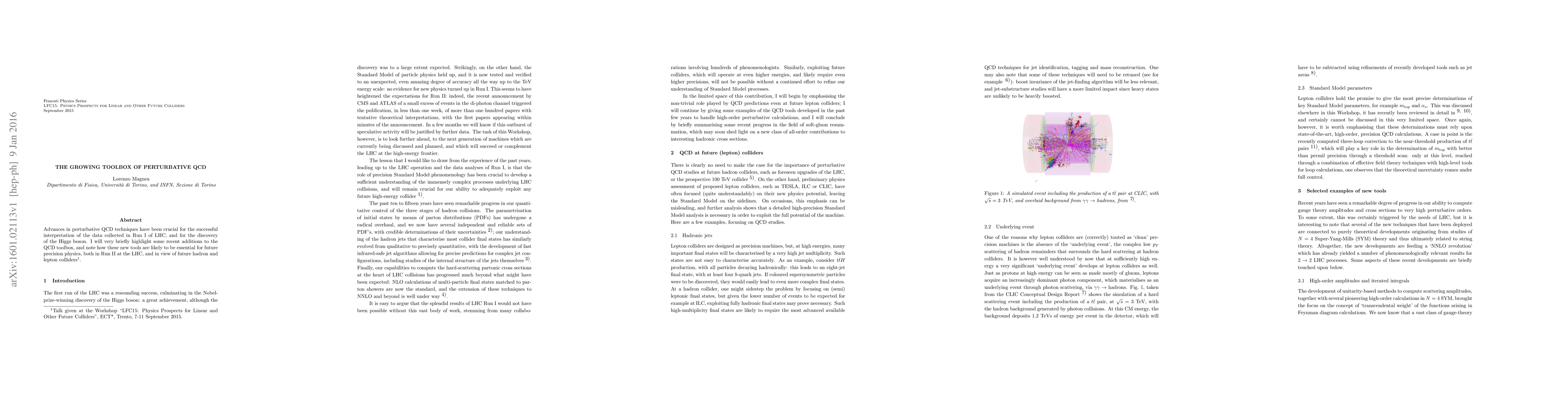 Advances in perturbative QCD techniques have been crucial for the successful interpretation of the data collected in Run I of LHC, and for the discovery of the Higgs boson. I will very briefly highlight some recent additions to the QCD toolbox, and note how these new tools are likely to be essential for future precision physics, both in Run II at the LHC, and in view of future hadron and lepton colliders.