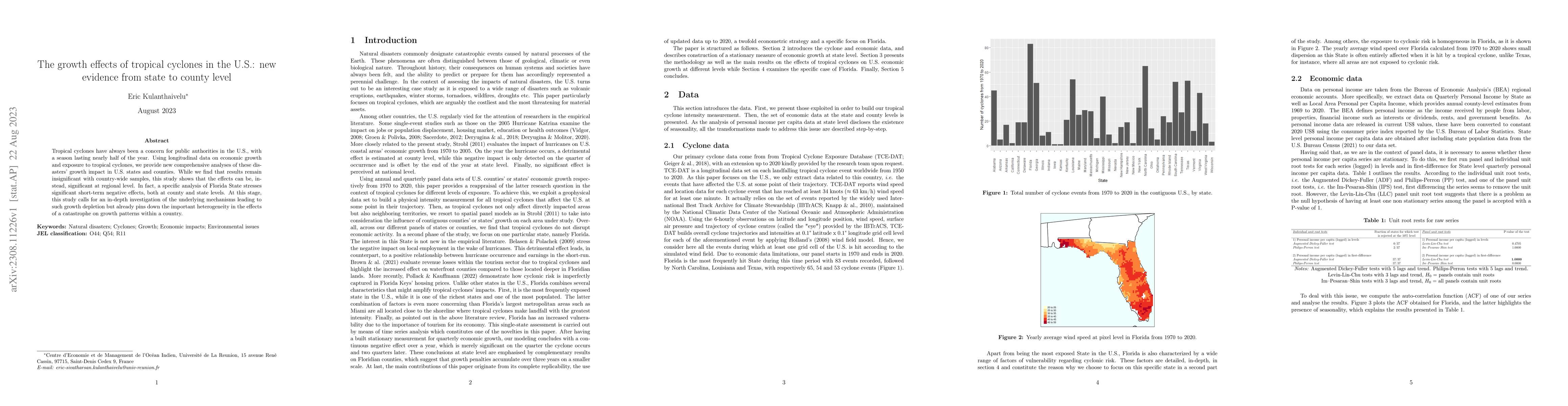 This study investigates the economic growth effects of tropical cyclones in the U.S. using state-to-county level data, revealing significant short-term negative impacts in Florida, particularly highlighting regional heterogeneity in disaster effects. Further research is needed to understand the mechanisms driving these regional disparities.