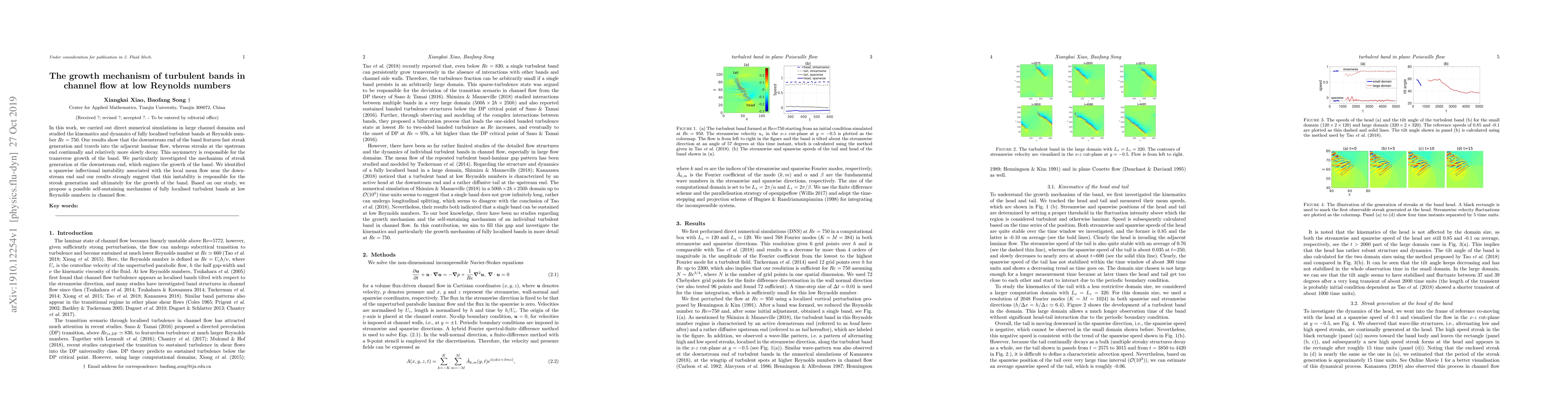 The study identifies a spanwise inflectional instability in the local mean flow as the primary mechanism for streak generation and growth of turbulent bands at low Reynolds numbers.