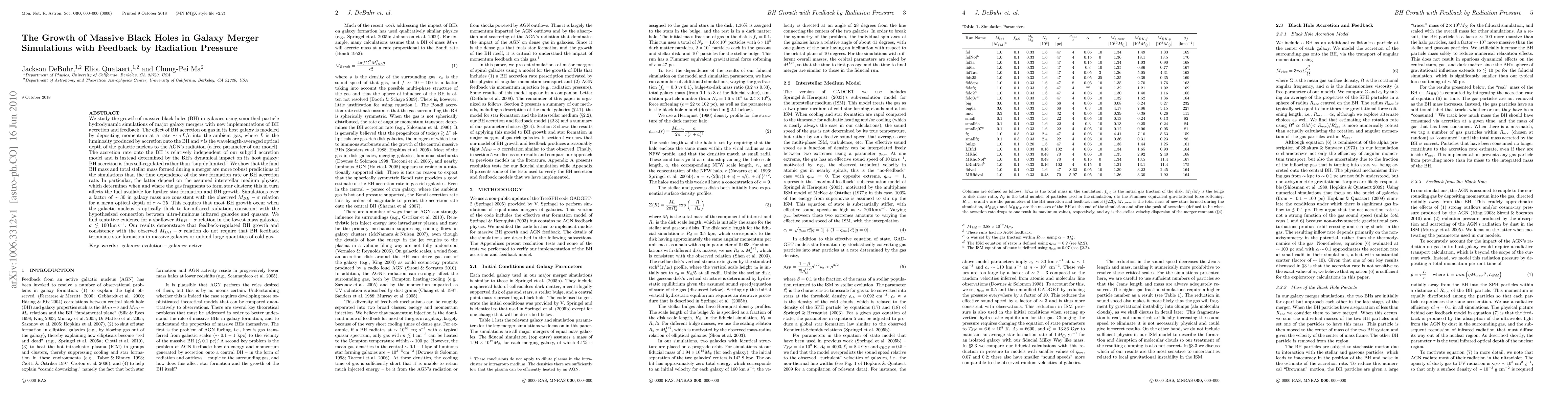 We study the growth of massive black holes (BH) in galaxies using smoothed particle hydrodynamic simulations of major galaxy mergers with new implementations of BH accretion and feedback. The effect of BH accretion on gas in its host galaxy is modeled by depositing momentum at a rate ~ tau L/c into the ambient gas, where L is the luminosity produced by accretion onto the BH and tau is the wavelength-averaged optical depth of the galactic nucleus to the AGN's radiation (a free parameter of our model). The accretion rate onto the BH is relatively independent of our subgrid accretion model and is instead determined by the BH's dynamical impact on its host galaxy: BH accretion is thus self-regulated rather than `supply limited.' We show that the final BH mass and total stellar mass formed during a merger are more robust predictions of the simulations than the time dependence of the star formation rate or BH accretion rate. In particular, the latter depend on the assumed interstellar medium physics, which determines when and where the gas fragments to form star clusters; this in turn affects the fuel available for further star formation and BH growth. Simulations over a factor of ~ 30 in galaxy mass are consistent with the observed M_BH-sigma relation for a mean optical depth of tau ~ 25. This requires that most BH growth occur when the galactic nucleus is optically thick to far-infrared radiation, consistent with the hypothesized connection between ultra-luminous infrared galaxies and quasars. We find tentative evidence for a shallower M_BH-sigma relation in the lowest mass galaxies, sigma < 100 km/s. Our results demonstrate that feedback-regulated BH growth and consistency with the observed M_BH-sigma relation do not require that BH feedback terminate star formation in massive galaxies or unbind large quantities of cold gas.