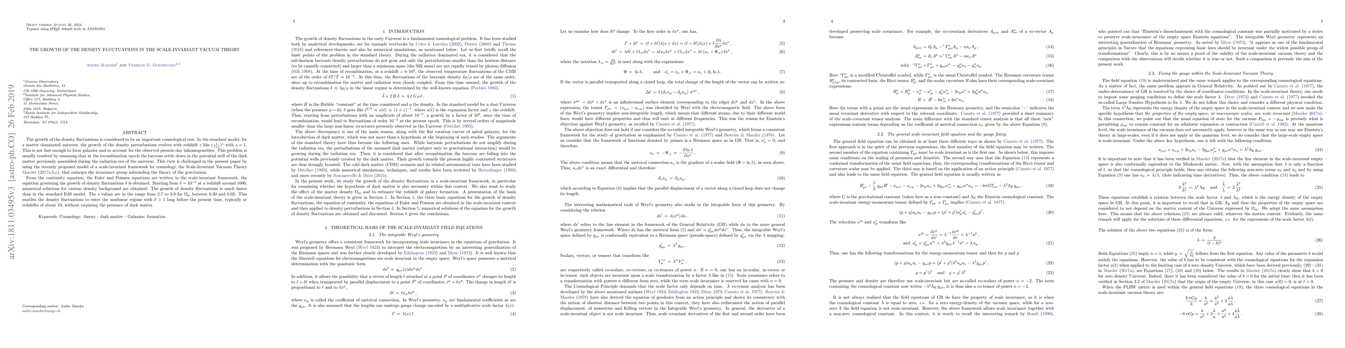 This paper challenges the standard model's assumption of dark matter's role in the growth of density fluctuations by proposing a scale-invariant cosmological framework. The model shows that density fluctuations grow much faster than in the standard model, entering the nonlinear regime much earlier without dark matter.