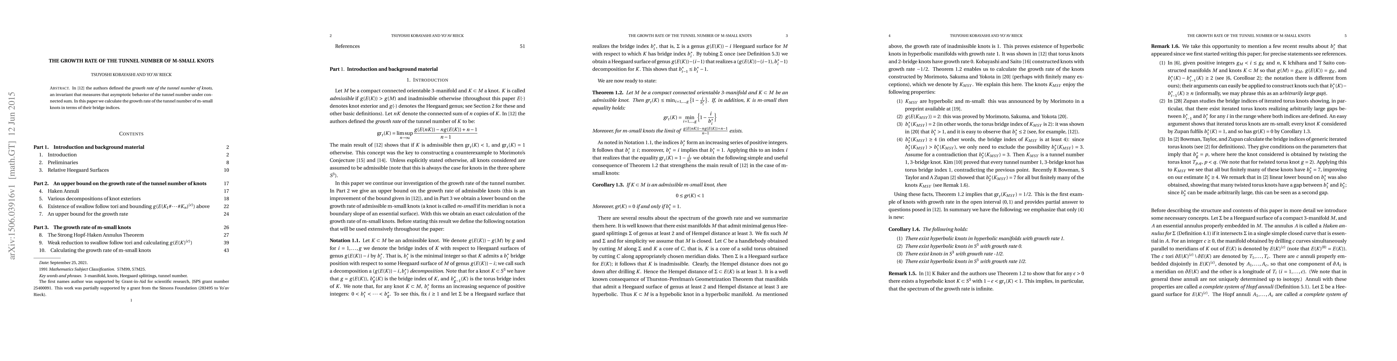 This paper calculates the growth rate of the tunnel number for m-small knots, defining it as an invariant that measures the asymptotic behavior of the tunnel number under connected sum, and expresses this growth rate in terms of the knots' bridge indices.