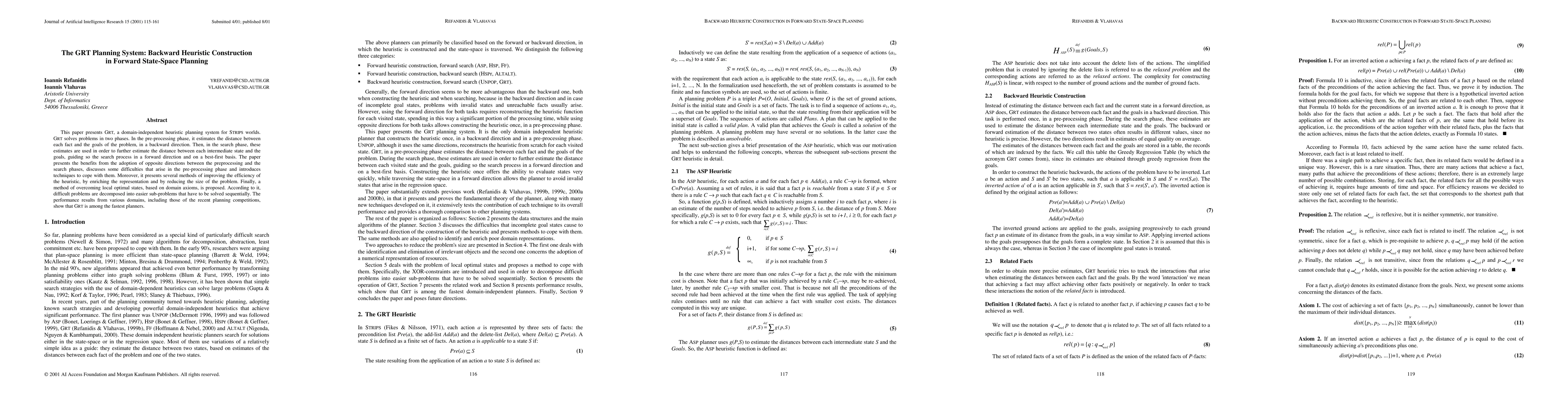 This paper introduces GRT, a domain-independent heuristic planning system for STRIPS worlds, which uses backward heuristic construction during pre-processing to guide a forward state-space search. GRT decomposes difficult problems into easier sub-problems and shows competitive performance in planning competitions.