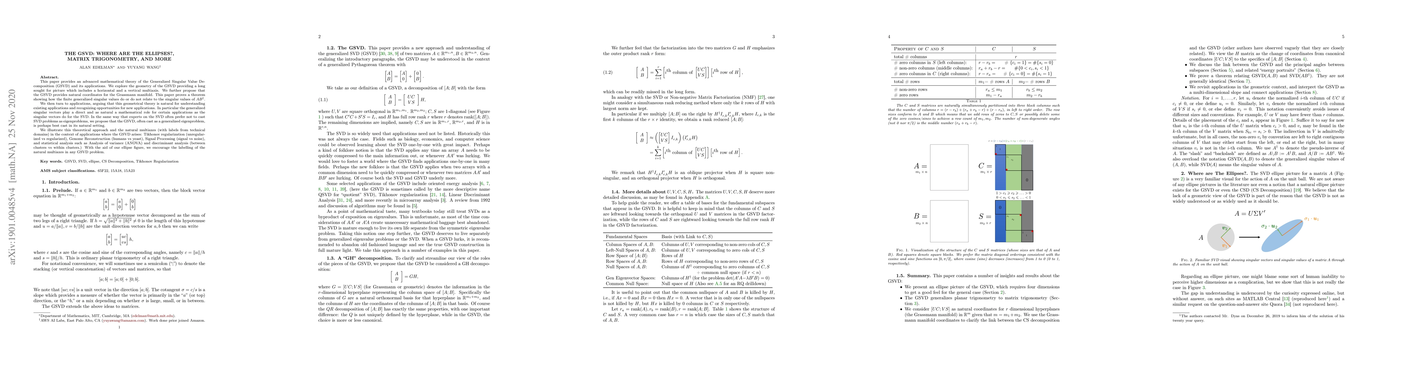This paper provides an advanced mathematical theory of the Generalized Singular Value Decomposition (GSVD) and its applications. We explore the geometry of the GSVD which provides a long sought for ellipse picture which includes a horizontal and a vertical multiaxis. We further propose that the GSVD provides natural coordinates for the Grassmann manifold. This paper proves a theorem showing how the finite generalized singular values do or do not relate to the singular values of $AB^\dagger$. We then turn to the applications arguing that this geometrical theory is natural for understanding existing applications and recognizing opportunities for new applications. In particular the generalized singular vectors play a direct and as natural a mathematical role for certain applications as the singular vectors do for the SVD. In the same way that experts on the SVD often prefer not to cast SVD problems as eigenproblems, we propose that the GSVD, often cast as a generalized eigenproblem, is rather best cast in its natural setting. We illustrate this theoretical approach and the natural multiaxes (with labels from technical domains) in the context of applications where the GSVD arises: Tikhonov regularization (unregularized vs regularization), Genome Reconstruction (humans vs yeast), Signal Processing (signal vs noise), and statistical analysis such as ANOVA and discriminant analysis (between clusters vs within clusters.) With the aid of our ellipse figure, we encourage in the future the labelling of the natural multiaxes in any GSVD problem.