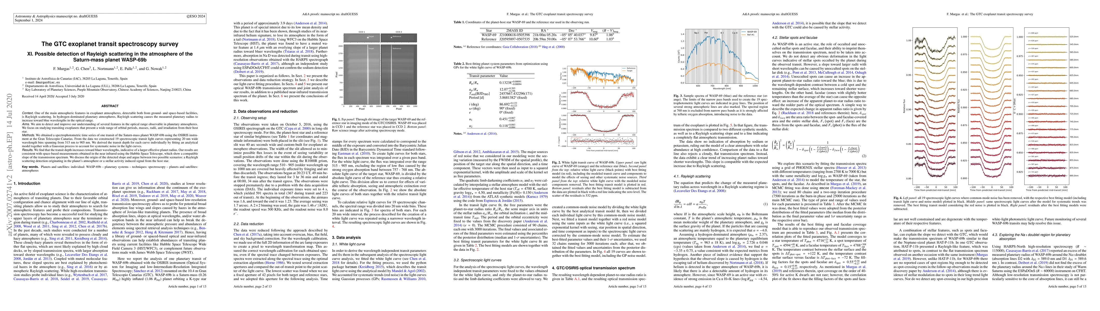 The research utilized spectrophotometric time series observations of WASP-69b's transit using the OSIRIS instrument at the Gran Telescopio Canarias, constructing 19 spectroscopic transit light curves across 20 nm wavelength bins from 515 nm to 905 nm.