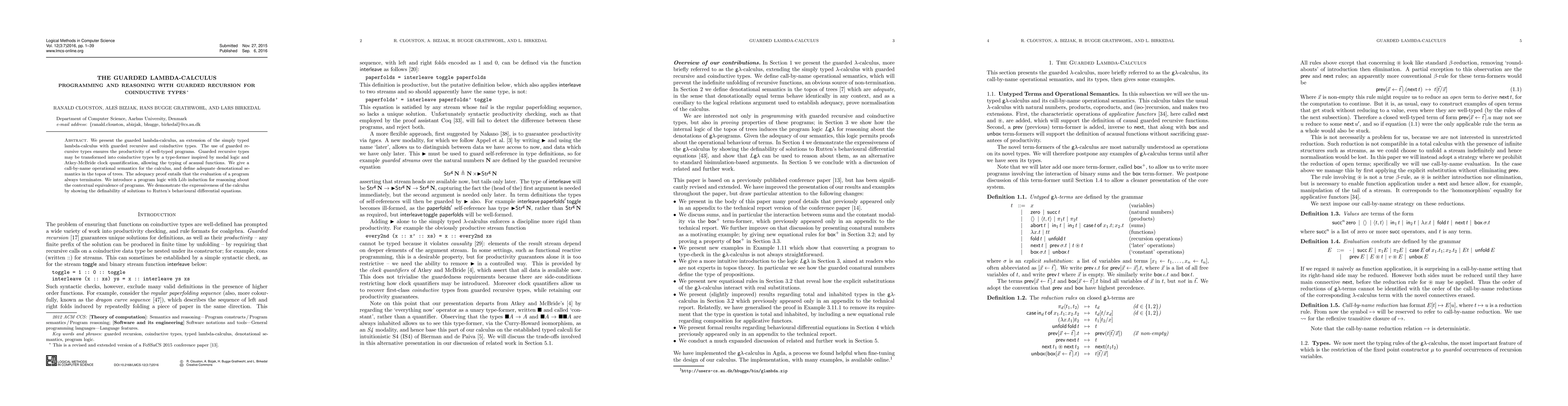 The guarded lambda-calculus, its call-by-name operational semantics, and adequate denotational semantics in the topos of trees, along with a program logic with Löb induction for contextual equivalence reasoning.