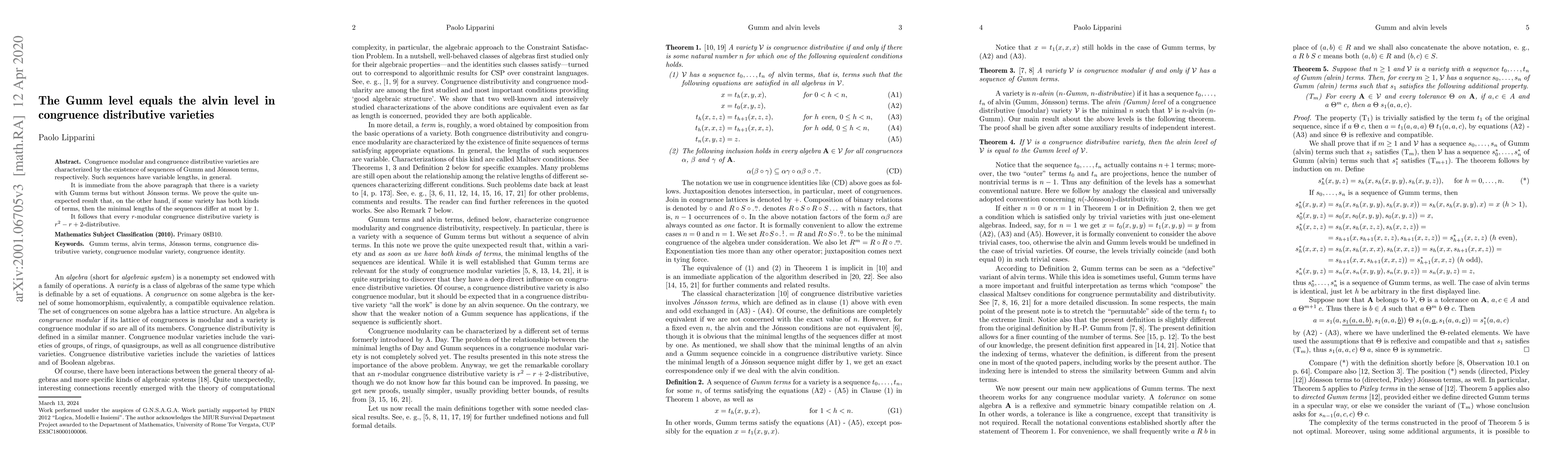 Congruence modular and congruence distributive varieties can be characterized by the existence of sequences of Gumm and J\'onsson terms, respectively. Such sequences have variable lengths, in general. It is immediate from the above paragraph that there is a variety with Gumm terms but without J\'onsson terms. We prove the quite unexpected result that, on the other hand, if some variety has both kinds of terms, then the minimal lengths of the sequences differ at most by $1$. It follows that every $r$-modular congruence distributive variety is $r^2-r+2$-distributive.