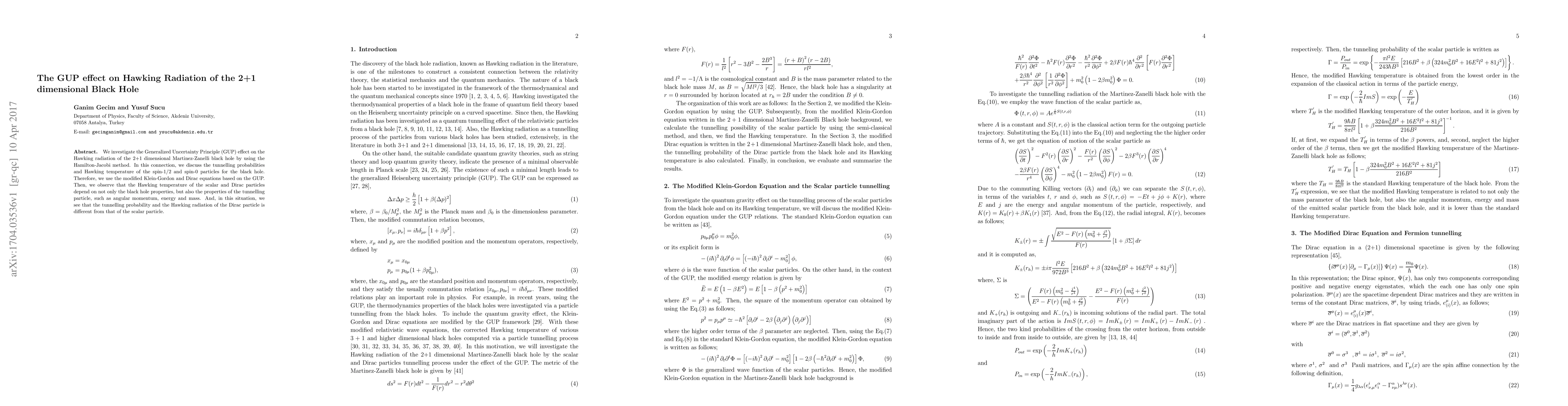 This paper explores the Generalized Uncertainty Principle (GUP) influence on Hawking radiation from a 2+1 dimensional black hole using the Hamilton-Jacobi method, revealing that the Hawking temperature and tunneling probabilities for spin-1/2 and spin-0 particles depend on both black hole and particle properties, with distinct behaviors for Dirac and scalar particles.