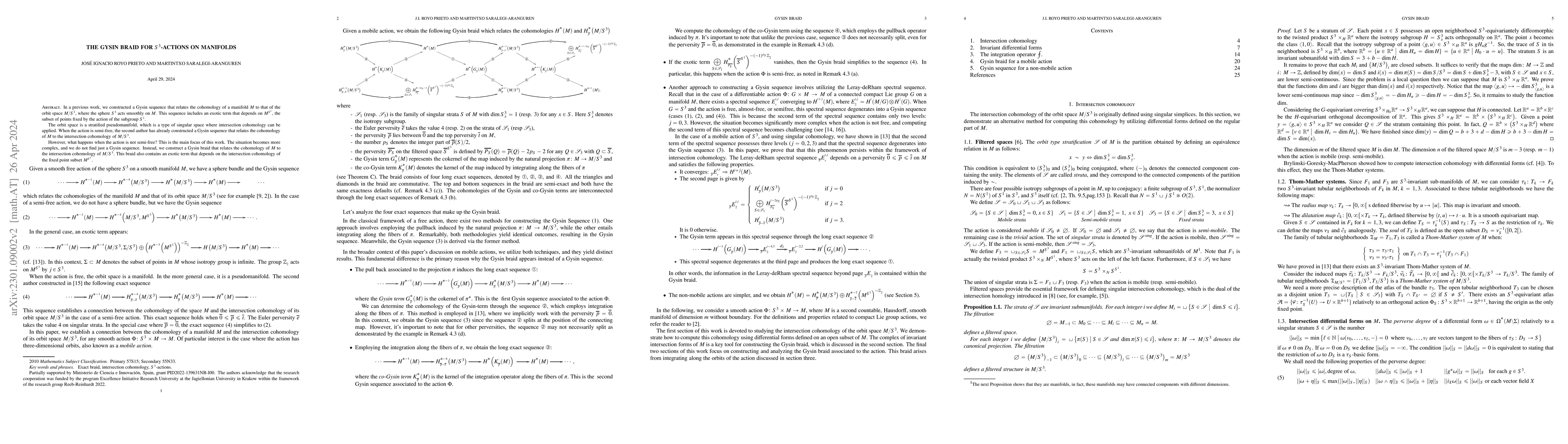 This paper explores the construction of a Gysin braid for non-semi-free $S^3$-actions on manifolds, revealing a complex relationship between the cohomology of $M$ and the intersection cohomology of the orbit space $M/S^3$. Unlike semi-free actions, the braid includes an exotic term based on the intersection cohomology of $M^{S^1}$.