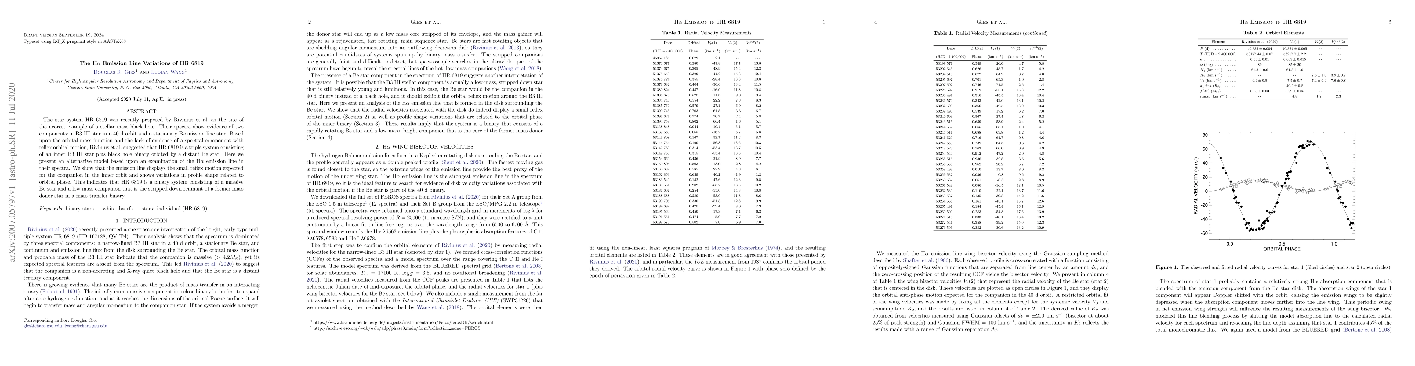 This paper proposes an alternative model for HR 6819, suggesting it is a binary system rather than a triple system, based on the analysis of H-alpha emission line variations that indicate a low-mass companion to a massive Be star. The findings challenge previous claims of a stellar mass black hole in the system.