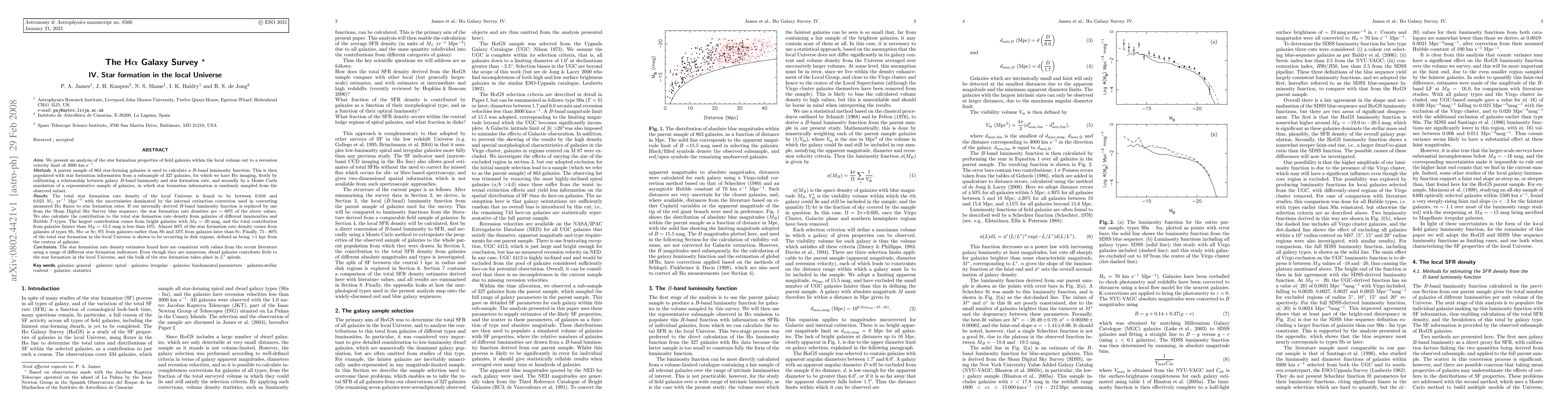 This study analyzes star formation in local field galaxies up to 3000 km/s, finding a total star formation rate density of 0.016-0.023 MSun/yr/cubic Mpc. The largest contributions come from bright galaxies and those of types Sb, Sbc, or Sc, with 75-80% of star formation occurring in disk regions.