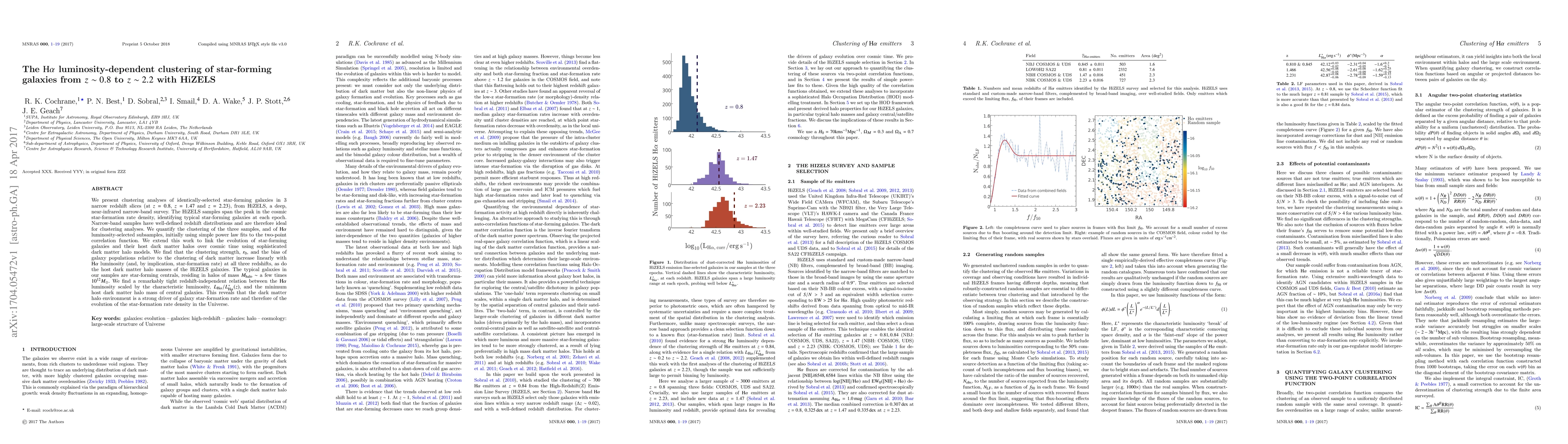 This paper analyzes the clustering of star-forming galaxies at redshifts z~0.8 to z~2.2 using HiZELS survey data, finding that galaxy clustering strength, bias, and dark matter halo mass increase linearly with H-alpha luminosity, indicating a strong link between galaxy star-formation rate and their dark matter halo environment.