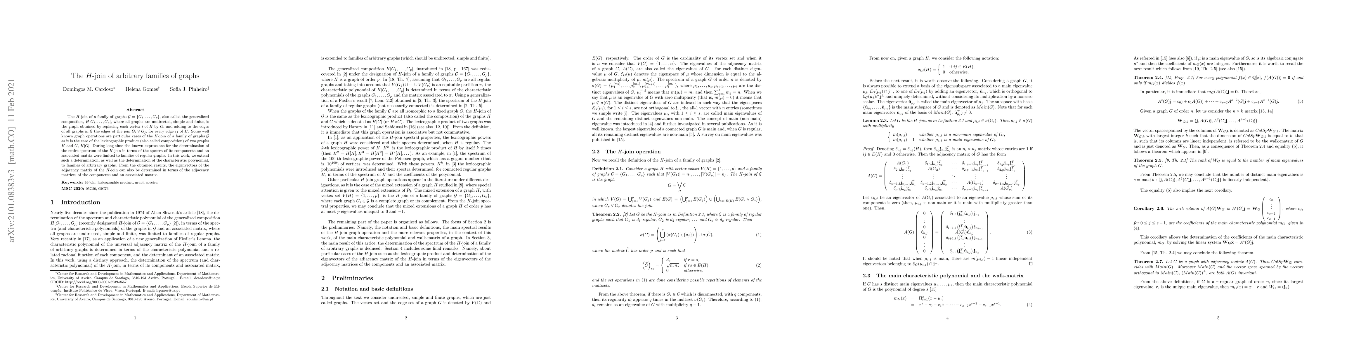 The $H$-join of a family of graphs $\mathcal{G}=\{G_1, \dots, G_p\}$, also called the generalized composition, $H[G_1, \dots, G_p]$, where all graphs are undirected, simple and finite, is the graph obtained by replacing each vertex $i$ of $H$ by $G_i$ and adding to the edges of all graphs in $\mathcal{G}$ the edges of the join $G_i \vee G_j$, for every edge $ij$ of $H$. Some well known graph operations are particular cases of the $H$-join of a family of graphs $\mathcal{G}$ as it is the case of the lexicographic product (also called composition) of two graphs $H$ and $G$, $H[G]$. During long time the known expressions for the determination of the entire spectrum of the $H$-join in terms of the spectra of its components and an associated matrix were limited to families of regular graphs. In this work, we extend such a determination, as well as the determination of the characteristic polynomial, to families of arbitrary graphs. From the obtained results, the eigenvectors of the adjacency matrix of the $H$-join can also be determined in terms of the adjacency matrices of the components and an associated matrix.