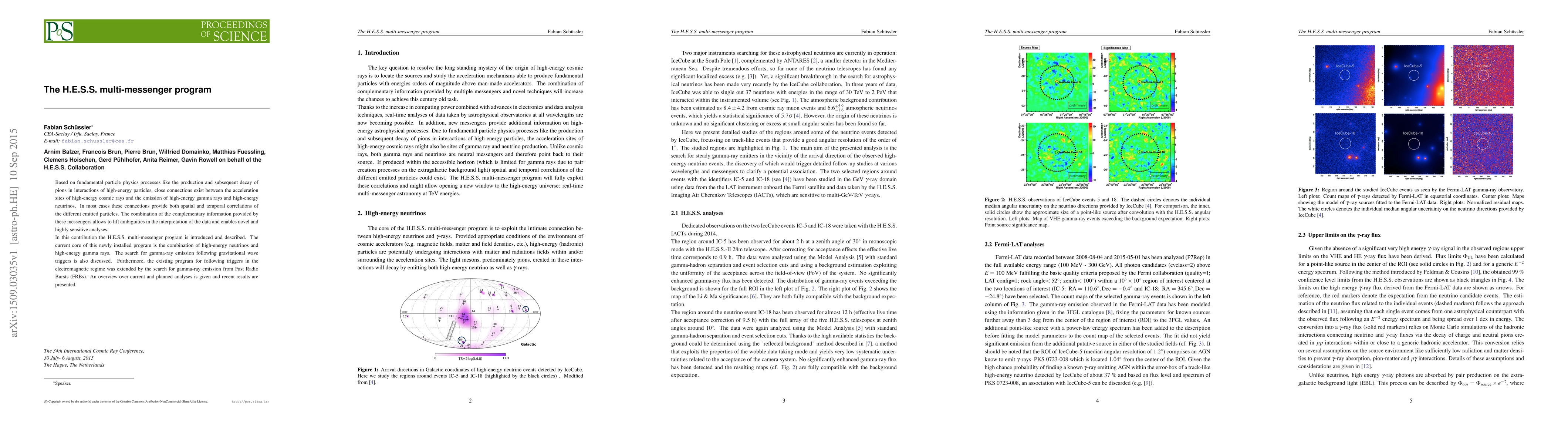 The H.E.S.S. multi-messenger program explores connections between high-energy cosmic rays, gamma rays, and neutrinos to lift ambiguities in data interpretation. It combines high-energy neutrinos with gamma rays and extends searches to gravitational waves and Fast Radio Bursts.