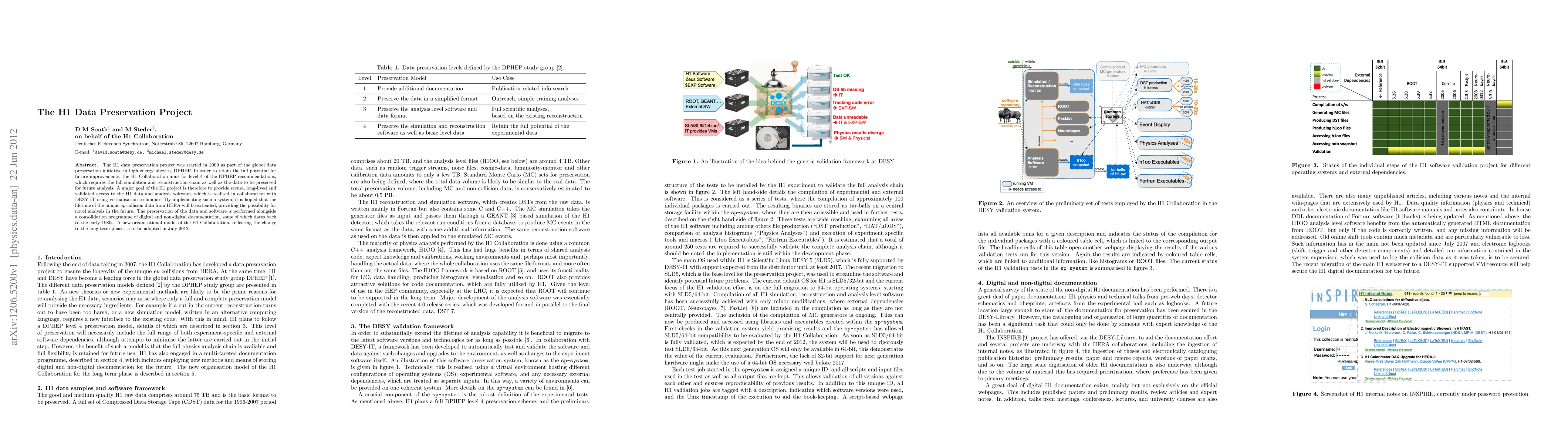 The H1 data preservation project aims to secure and extend the lifetime of unique ep collision data from HERA for future analysis, utilizing virtualization and collaboration with DESY-IT. Alongside data and software preservation, it consolidates decades-old documentation and adopts a new organizational model for long-term maintenance.