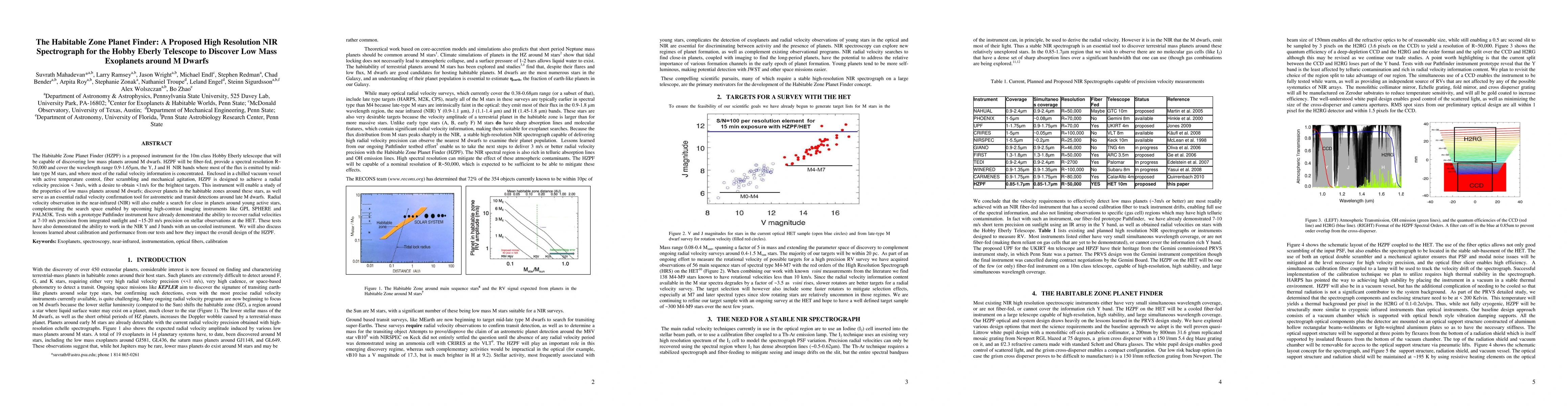 The Habitable Zone Planet Finder (HZPF) is a proposed high-resolution NIR spectrograph for the Hobby Eberly Telescope designed to discover low mass planets around M dwarfs, achieving radial velocity precision < 3m/s. Initial tests with a prototype have demonstrated the ability to recover radial velocities with precision, paving the way for detailed studies of exoplanets in habitable zones.