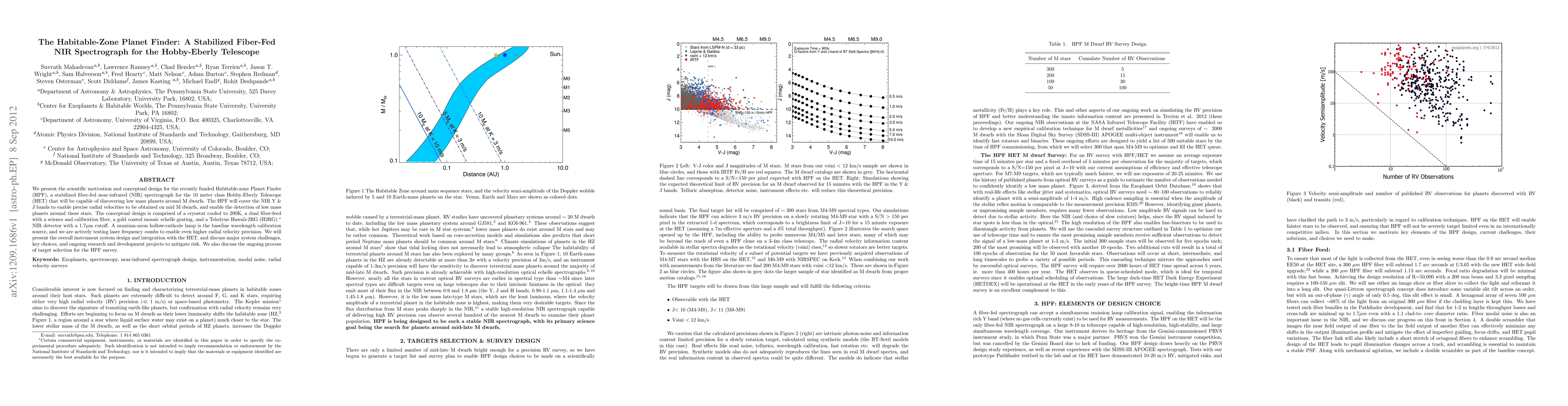 This research is significant as it aims to discover low-mass planets around M dwarfs, which are crucial targets in the search for habitable exoplanets. The HPF's design addresses challenges specific to NIR spectrographs, such as modal noise and thermal background, paving the way for precise radial velocity measurements in the NIR.