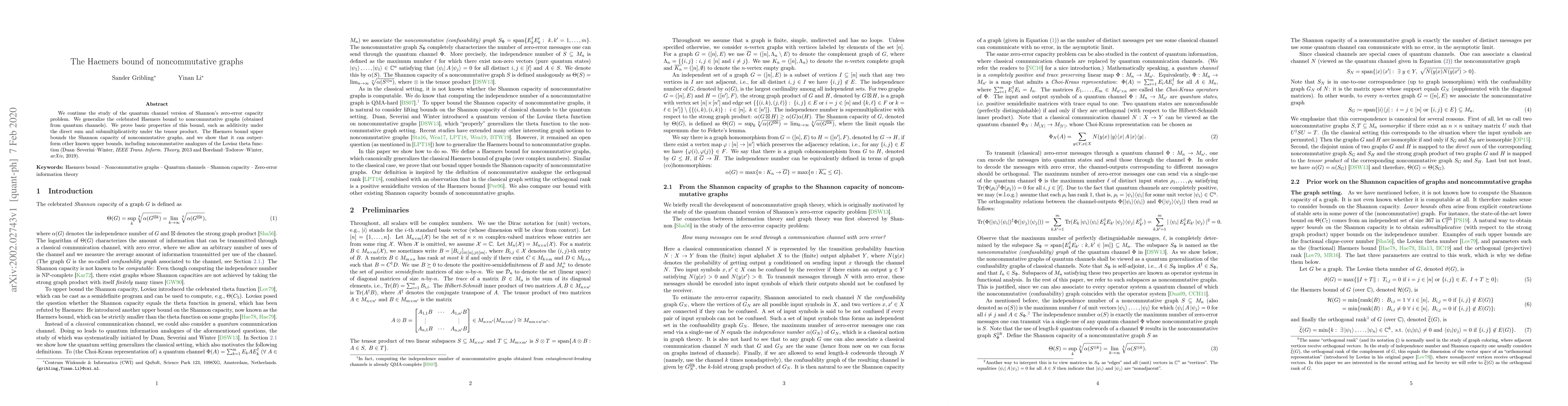 The Haemers bound is generalized to noncommutative graphs, providing an upper bound for Shannon capacity that can outperform known bounds in certain cases.