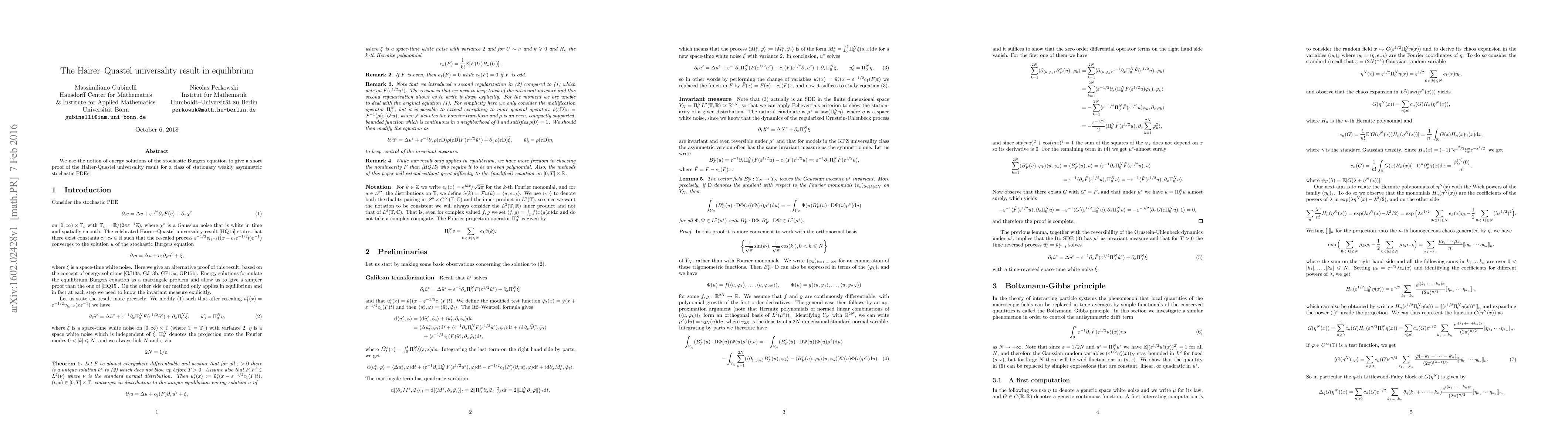 We use the notion of energy solutions of the stochastic Burgers equation to give a short proof of the Hairer-Quastel universality result for a class of stationary weakly asymmetric stochastic PDEs.
