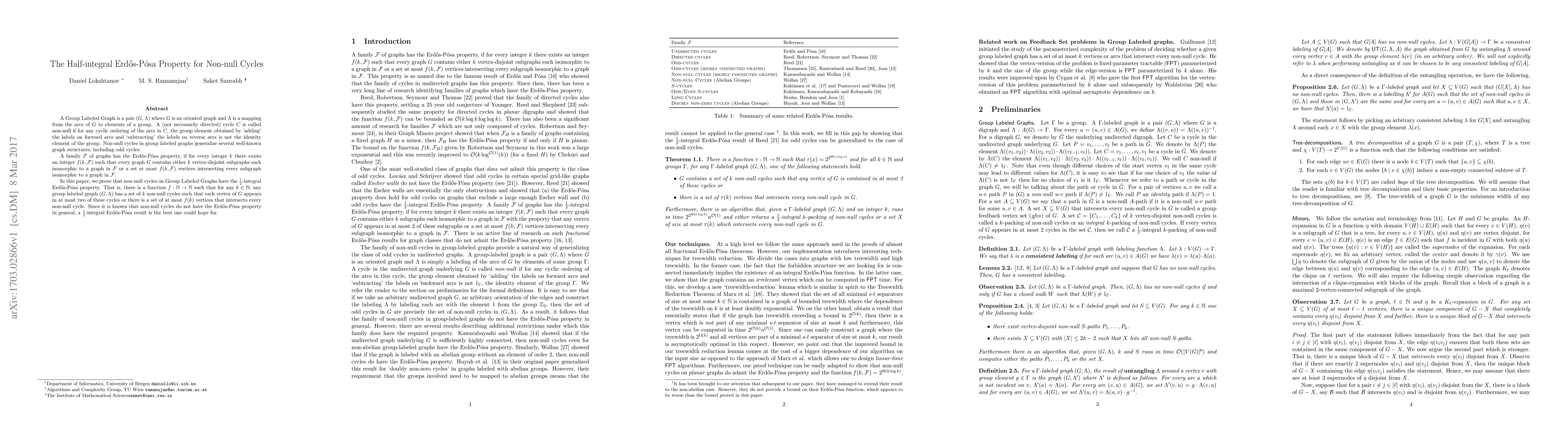 The paper proves that non-null cycles in group labeled graphs have a half-integral Erdos-Posa property, meaning there exists a function to select k non-null cycles or a set of vertices intersecting every cycle with at most f(k) vertices.