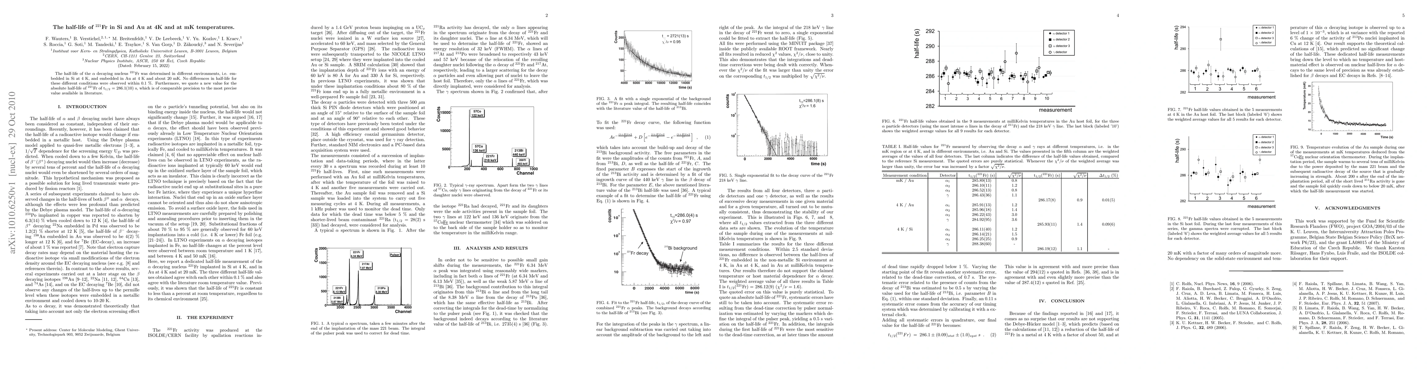 The half-life of the $\alpha$ decaying nucleus $^{221}$Fr was determined in different environments, i.e. embedded in Si at 4 K, and embedded in Au at 4 K and about 20 mK. No differences in half-life for these different conditions were observed within 0.1%. Furthermore, we quote a new value for the absolute half-life of $^{221}$Fr of t$_{1/2}$ = 286.1(10) s, which is of comparable precision to the most precise value available in literature.
