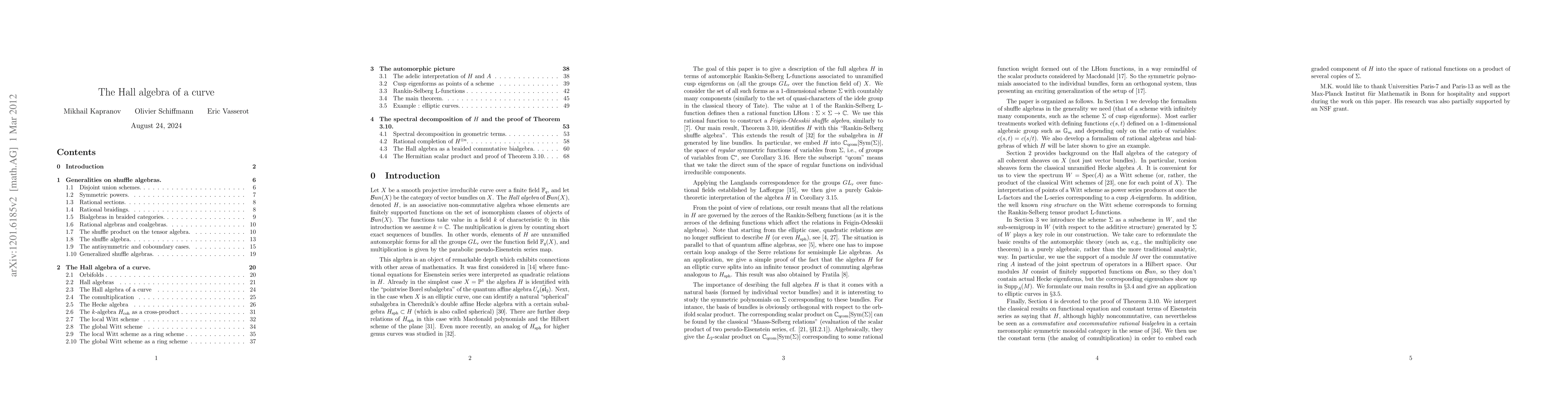 Researchers describe a Hall algebra of vector bundles on a curve as a Feigin-Odesskii shuffle algebra, which corresponds to L-function zeroes controlling relations, and relates to cusp eigenforms and symmetric powers.