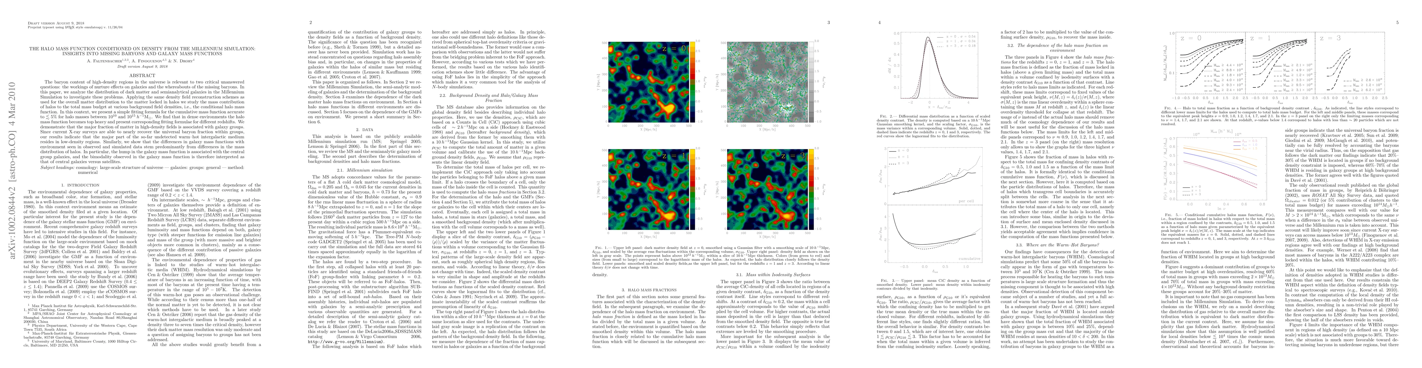 This paper investigates the conditional halo mass function in high-density regions using the Millennium Simulation, revealing that dense environments have a top-heavy halo mass function. It suggests that the missing baryons are likely in low-density, low-temperature regions, and that differences in galaxy mass functions across environments are primarily due to the mass distribution of their host halos.