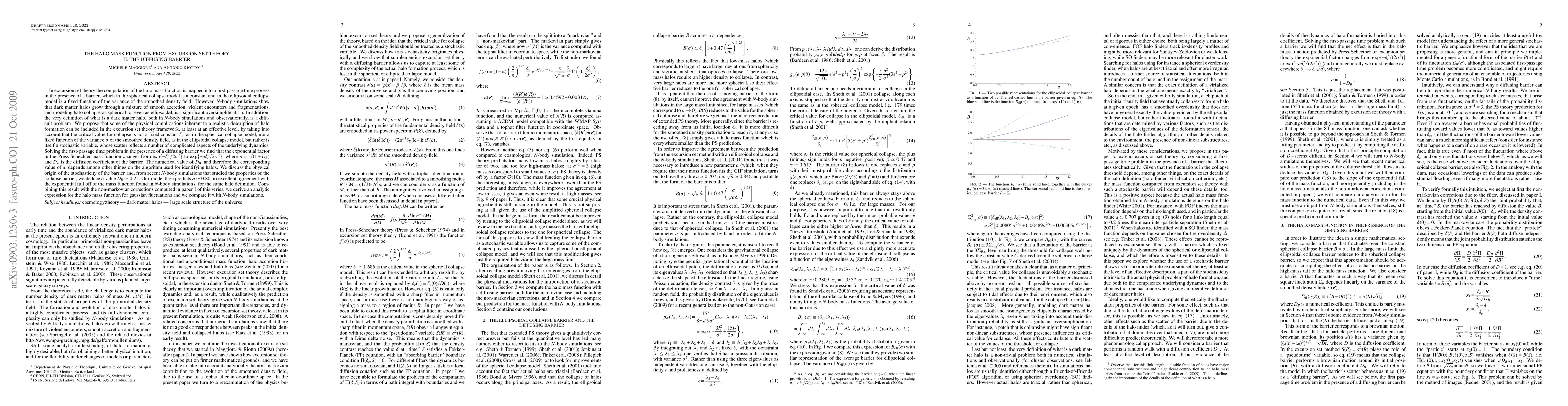 This paper proposes a modified excursion set theory to better model the stochastic nature of dark matter halo formation, introducing a diffusing barrier instead of a fixed collapse threshold. The resulting mass function shows a modified exponential factor, reflecting the stochasticity inherent in halo dynamics.