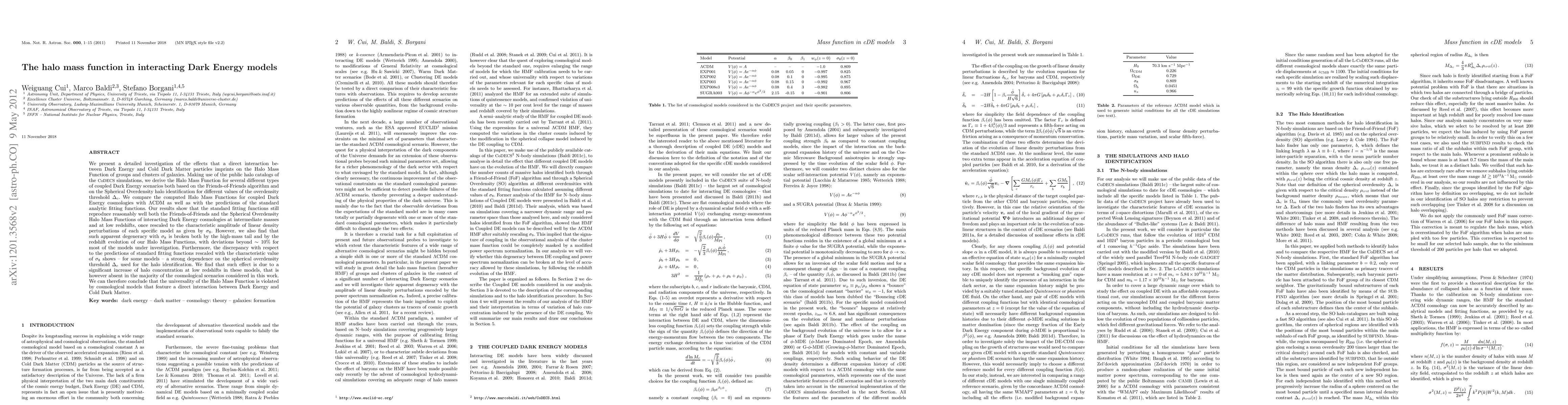 This research investigates the impact of direct interactions between Dark Energy and Cold Dark Matter on the Halo Mass Function using CoDECS simulation data. While standard fitting functions reasonably match the HMFs of interacting DE models at intermediate masses and low redshifts, significant deviations arise in the high-mass tail and with redshift evolution, indicating that the universality of the HMF is violated in such models.